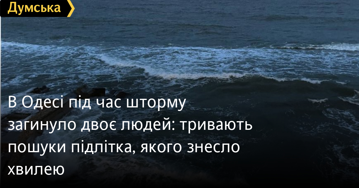В Одесі під час шторму загинуло двоє людей: тривають пошуки підлітка, якого знесло хвилеюДвоє людей загинули під час учорашнього шторму в Одесі. Ще одного, підлітка, знесло хвилею, де він зараз, невідомо, повідомили в мерії. Тривають його пошуки. У міськраді нагадують, що в Одесі все ще діє заборона на купання в морі. СМЕРТЬ РОСІЙСЬКИМ ОКУПАНТАМ! Помітили помилку? Виділяйте слова з помилкою та натискайте control-enter |