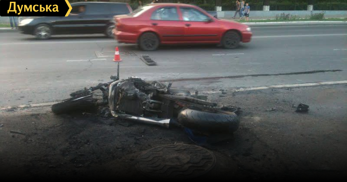 После удара двухколесное транспортное средство выскочило на встречную полосу, где столкнулось с грузовым микроавтобусом «Фольксваген LT 35». К счастью, водитель и пассажирка мотоцикла успели вовремя соскочить с него и отделались легкими травмами. Сам же байк сгорел. В микроавтобусе пострадавших нет, а вот «БМВ» с места событий скрылся.