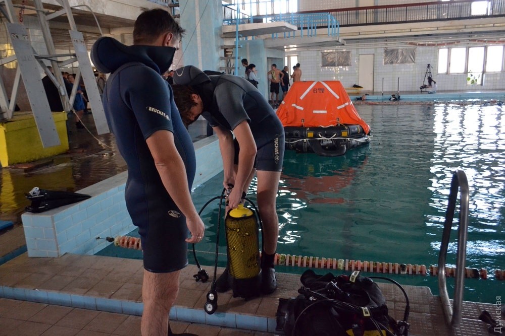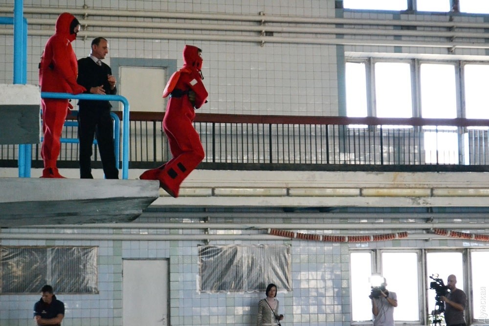 В Одессе водолазы учились оказывать помощь пассажирам тонущего судна (видео, фото)Сегодня, 13 ноября, водолазы городской спасательно-водолазной службы отрабатывали спасение пассажиров терпящего бедствие судна. Учения проводили в бассейне Одесской морской академии. «По легенде учений, судно терпит бедствие, на борту находятся пострадавшие и одна половина одела жилеты, но остаются те, кто ничего не одел и пострадавшие прыгают с 3-х метровой высоты покидая борт судна, чтобы спастись на надувном спасательном плоте, который выкинут за борт и находится в перевернутом состоянии», — рассказывает начальник водолазного отдела Спасательно-водолазной службы Одесского горсовета Геннадий Гангал. В ходе учений спасатели перевернули плот, на который затащили «пострадавших» и затем приступили к поискам «утонувшего», которому после обнаружения оказали первую медицинскую помощь. Отметим, что после водолазов спасать тонущих людей учились курсанты академии. СМЕРТЬ РОСІЙСЬКИМ ОКУПАНТАМ! Помітили помилку? Виділяйте слова з помилкою та натискайте control-enter |