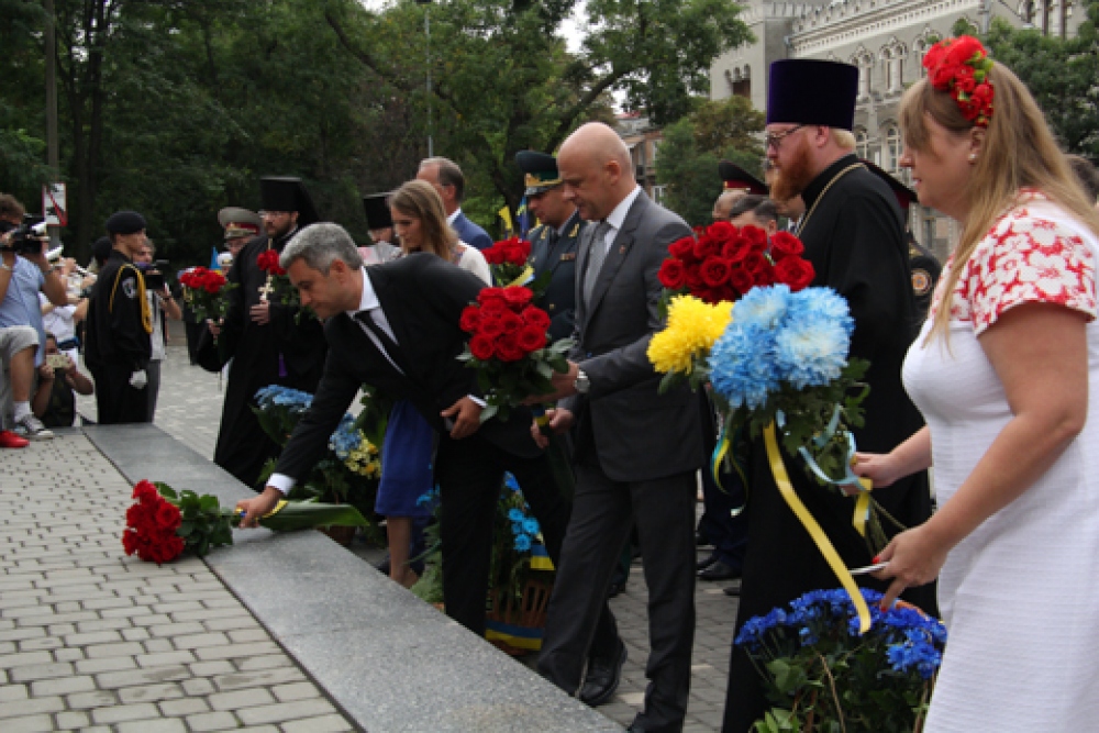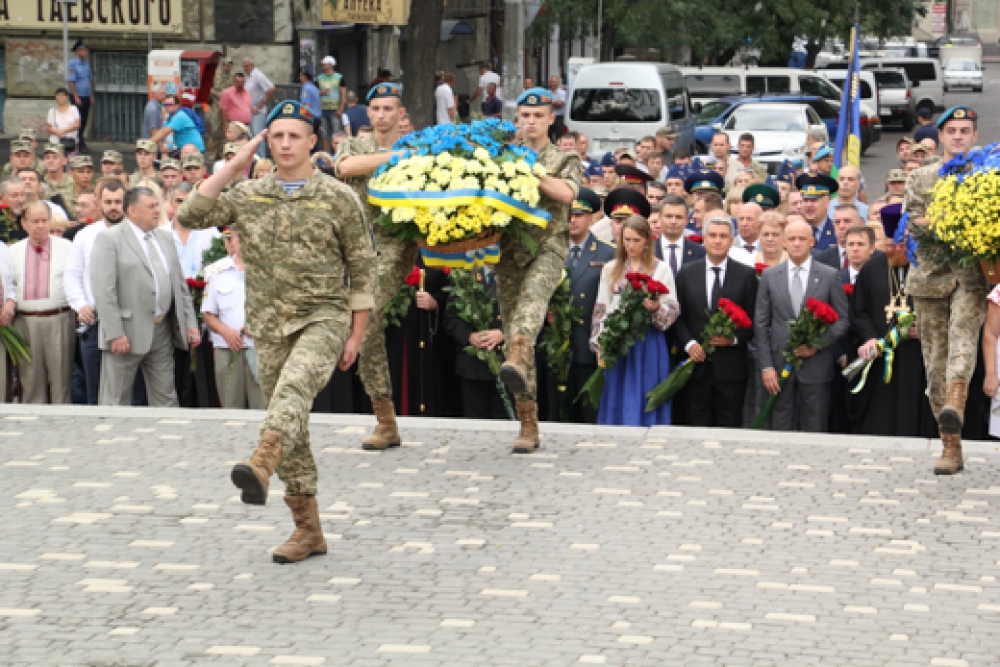 По случаю 25-й годовщины Независимости Украины в Одессе состоялась торжественная церемония возложения цветов к памятнику Тарасу Шевченко в одноименном парке. Как сообщает пресс-служба горсовета, в торжественном мероприятии приняли участие мэр Одессы Геннадий Труханов, руководство Одесского областного и городского советов, облгосадминистрации и районных городских администраций, депутаты, представители аккредитованных в Одессе дипломатических миссий, военнослужащие различных родов войск Вооруженных Сил Украины, участники АТО, ветераны, духовенство и общественность. СМЕРТЬ РОСІЙСЬКИМ ОКУПАНТАМ! Помітили помилку? Виділяйте слова з помилкою та натискайте control-enter |