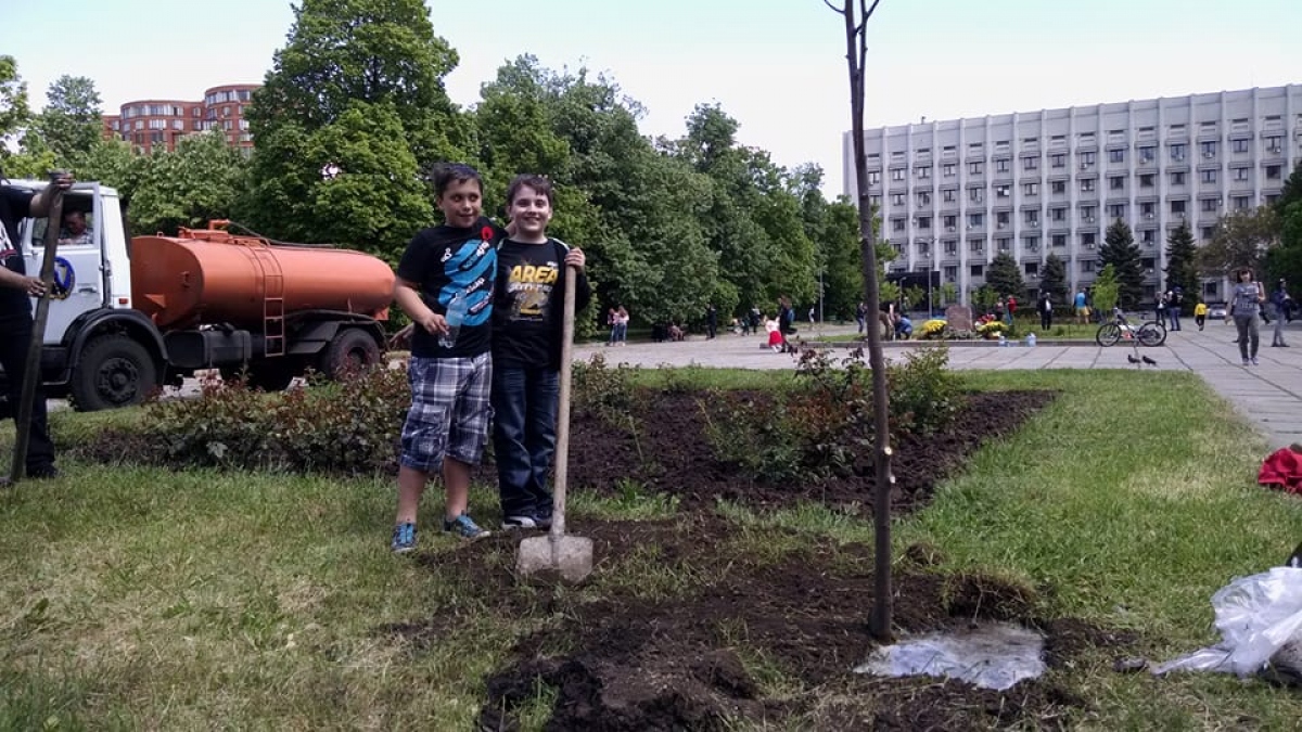 Сегодня, 9 мая, возле здания ОГА на проспекте Шевченко патриотическая общественность высадила два десятка молодых лип, заложив Аллею воинов, погибших в АТО. По словам участников акции, накануне саженцы были приобретены в Красносельском лесничестве, и уже сегодня их доставили на место высадки.