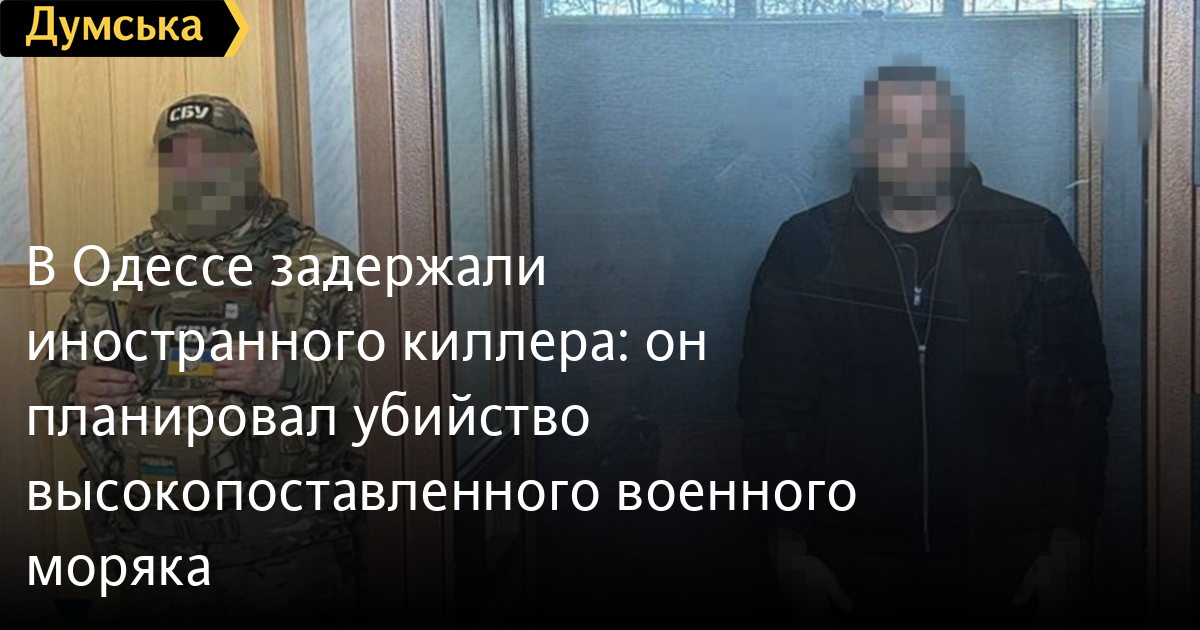 В Одессе задержали иностранного киллера: он планировал убийство высокопоставленного военного морякаИностранного киллера, который готовил убийство высокопоставленного офицера Военно-морских сил, задержали в Одессе. По данным СБУ, 37-летнего гражданина страны Балтии завербовали российские спецслужбы. В феврале 2026 года агент приехал в Украину под видом туриста, сначала в Киев, а затем переехал в Одессу, где начал следить за своей потенциальной жертвой. Чтобы не привлекать внимания, мужчина постоянно менял арендованные квартиры и гостиницы. Позже он получил от куратора координаты тайника, где забрал боеприпасы и пистолет с глушителем. Киллер подкарауливал офицера возле жилого комплекса. Фигурант притворился, что ремонтирует велосипед, и ожидал автомобиль военного. Когда машина подъехала, агент попытался открыть огонь, однако его задержали бойцы спецподразделения СБУ. Мужчине сообщили о подозрении и поместили в СИЗО. Ему грозит до 12 лет лишения свободы за покушение на убийство (ч. 2 ст. 15, ч. 2 ст. 258 Уголовного кодекса Украины). СМЕРТЬ РОССИЙСКИМ ОККУПАНТАМ! Заметили ошибку? Выделяйте слова с ошибкой и нажимайте control-enter |