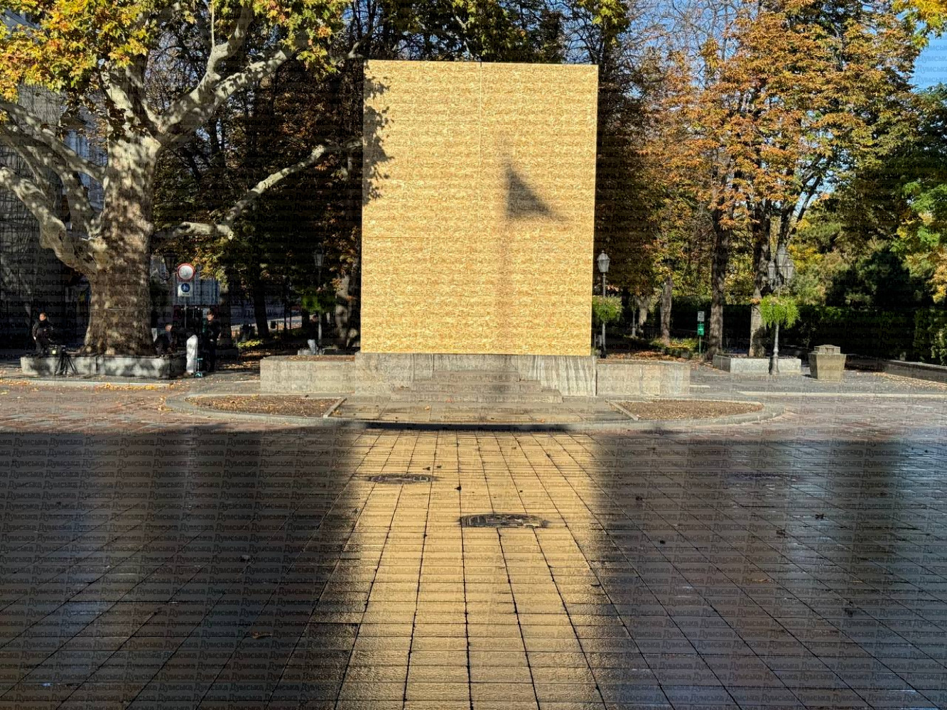 Як повідомляє кореспондент «Думської», бюст перебуває під щитом із дерев’яних плит, як і меморіальна табличка.