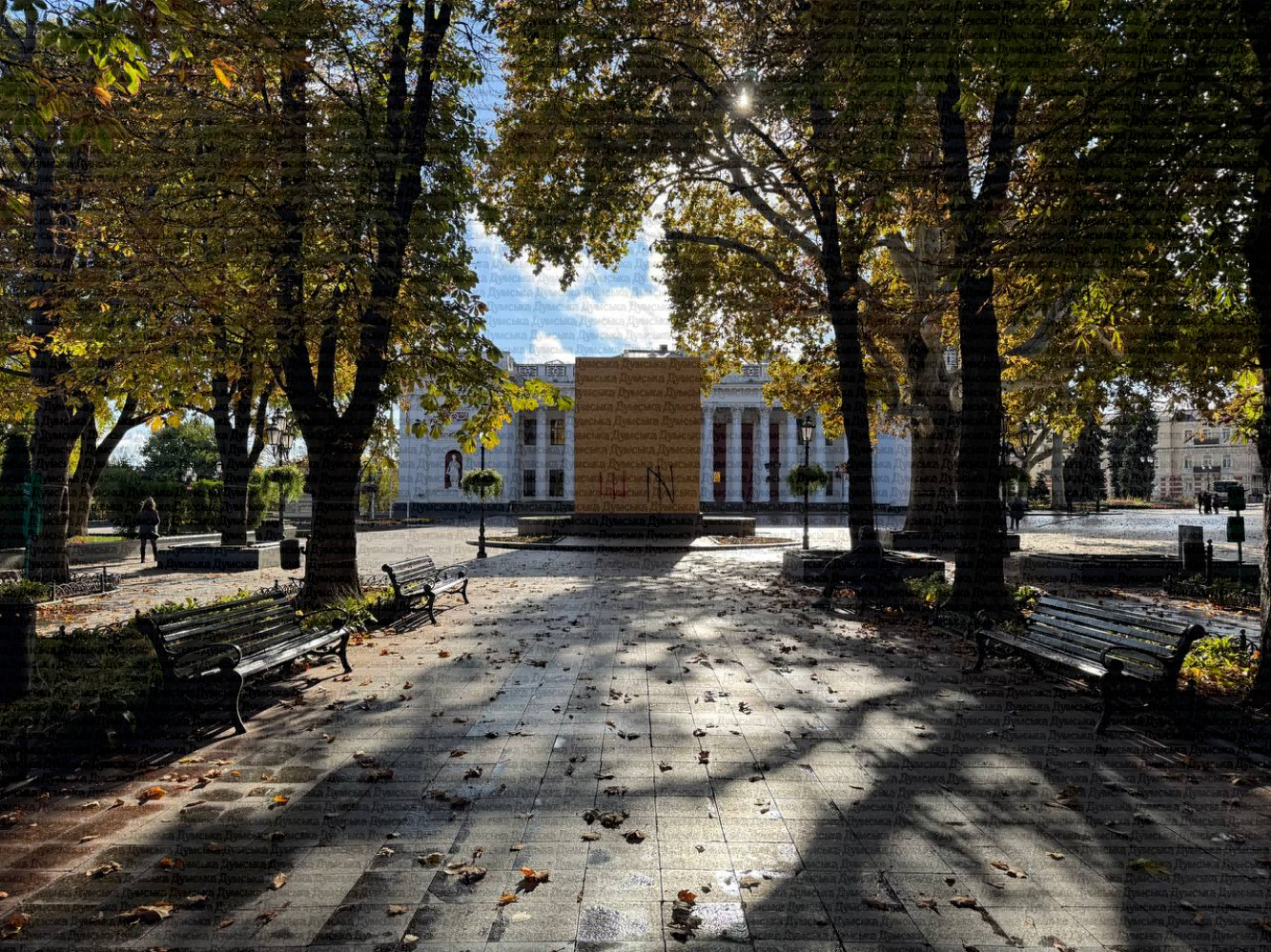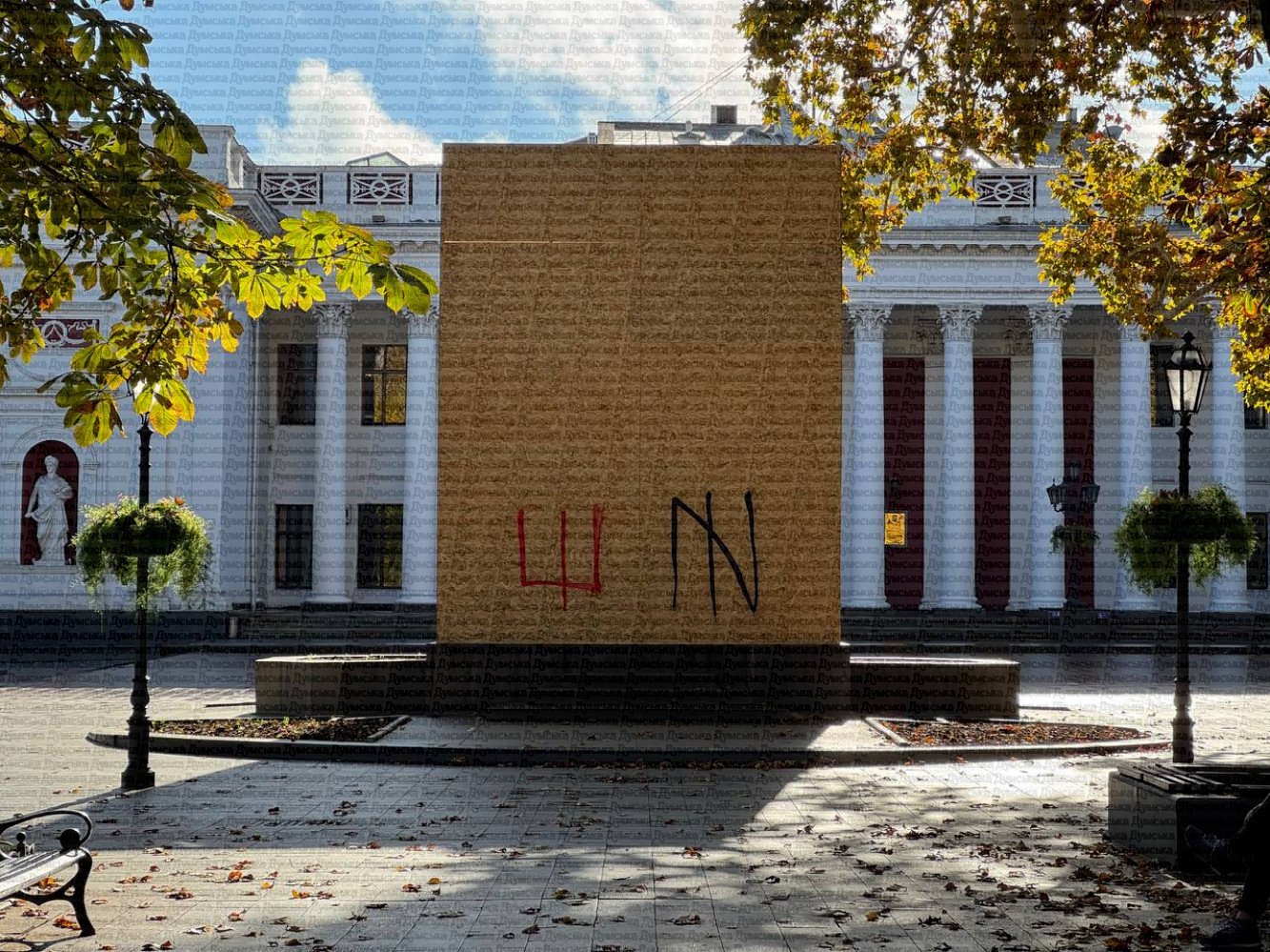Пам’ятник російському письменнику Олександру Пушкіну, що біля одеської мерії, скрили під фанерою.