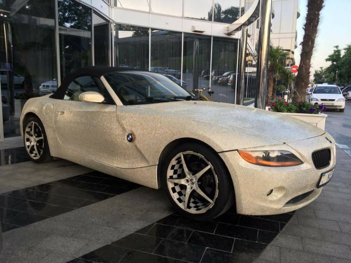 Интересно, что такой же родстер два года назад заметили в соседней Молдове. Тогда СМИ окрестили его «BMW Swarovski». 27-летний владелец машины — Виктор Данила из Кишинева — рассказал, что обклеил авто самостоятельно, на что у него ушло полгода и 250 тысяч камней. Кристаллами отделаны даже диски.