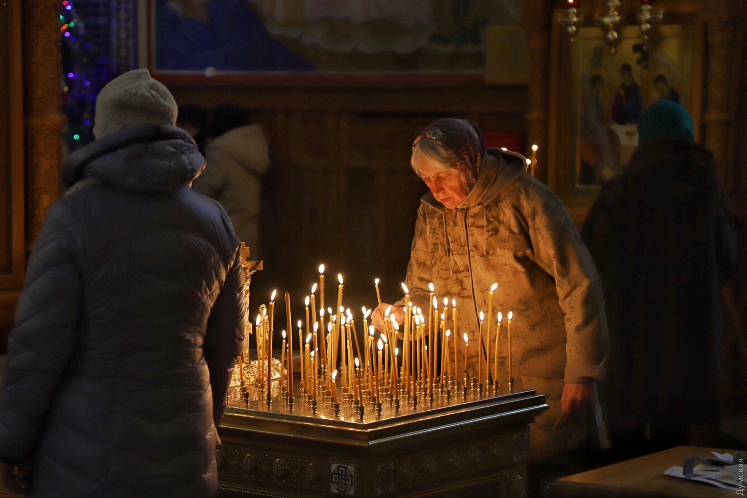 Здесь и ниже утренняя служба в Украинской православной церкви на Пастера