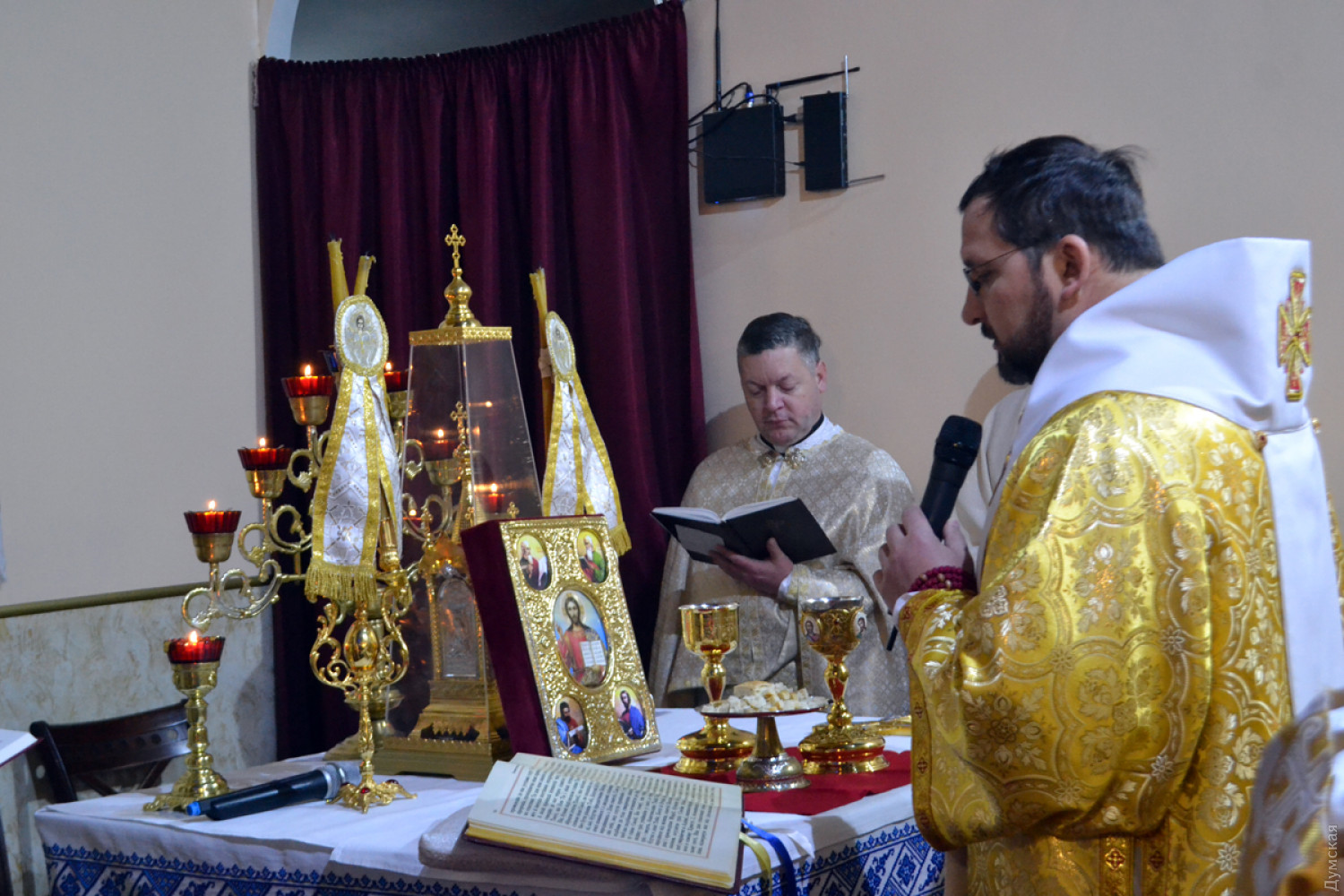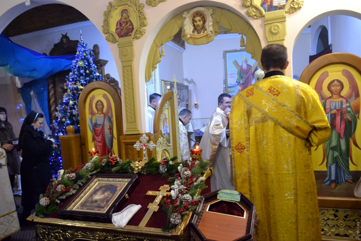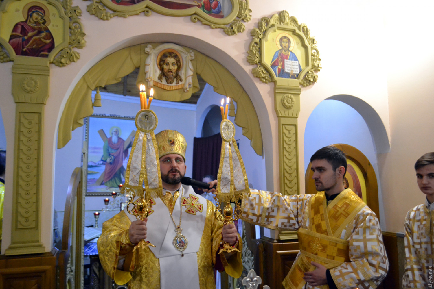 Здесь и ниже утренняя служба в Кафедральном храме «Святого апостола Андрея Первозванного» Украинской греко-католической церкви Одесского экзархата на Гимназической