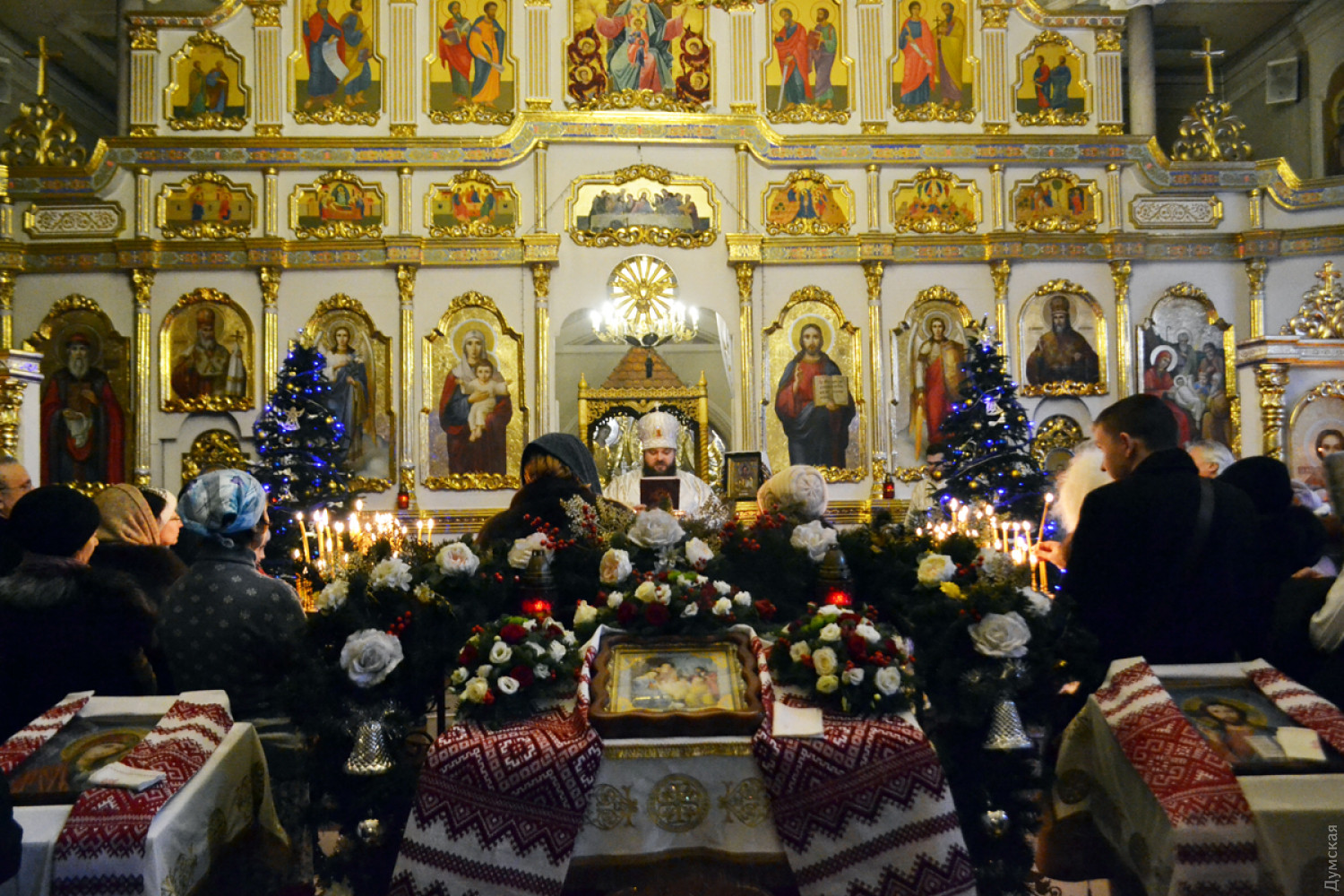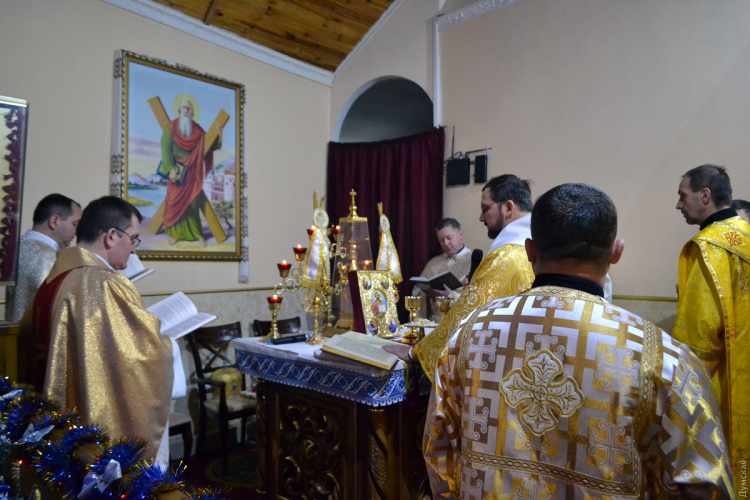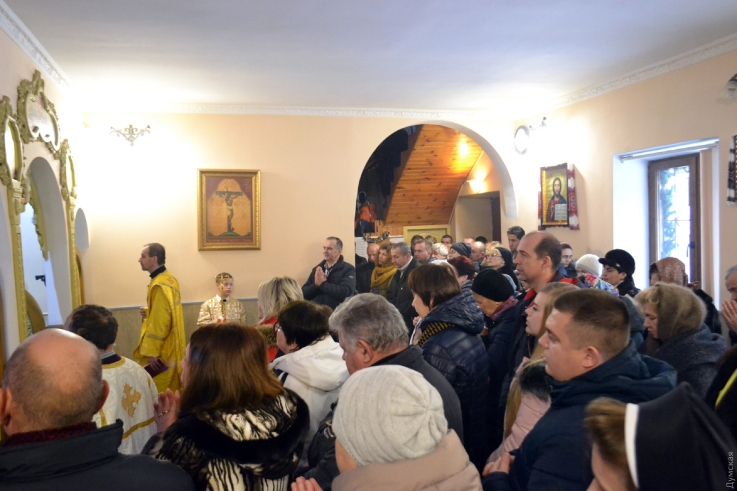 Здесь и ниже утренняя служба в Кафедральном храме «Святого апостола Андрея Первозванного» Украинской греко-католической церкви Одесского экзархата на Гимназической