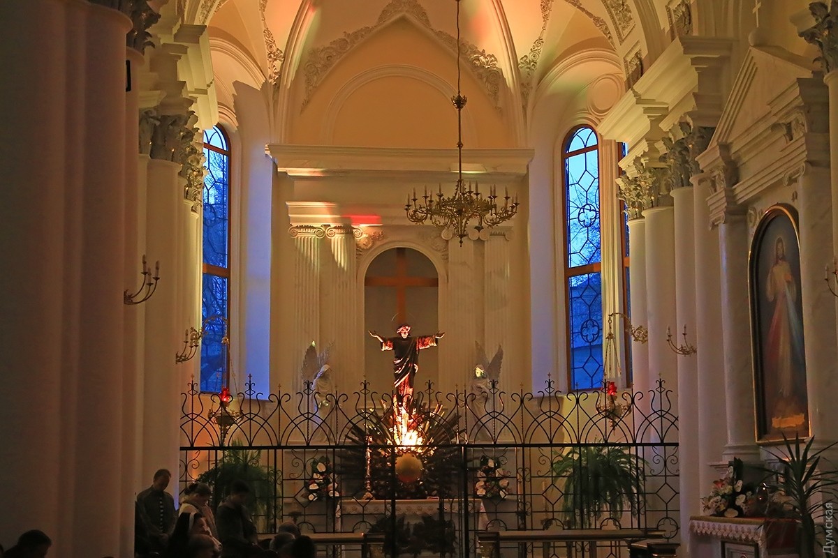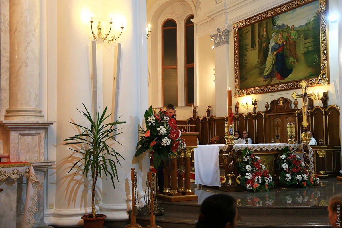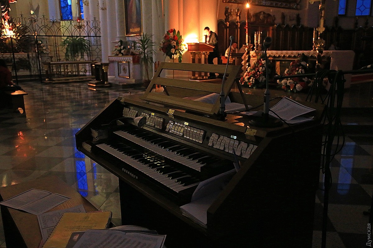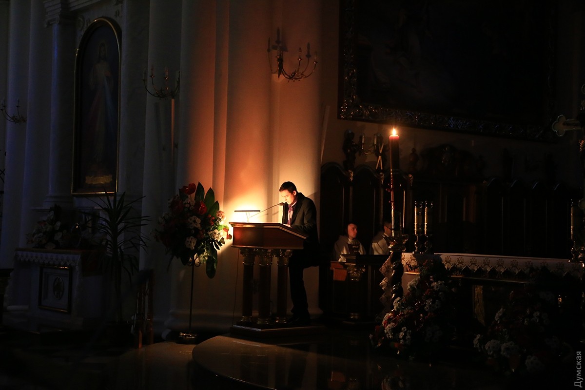 В одесских христианских храмах проходят ночные пасхальные службы. В римско-католическом соборе Успения Пресвятой Девы Марии праздничное действо началось в 19 часов. Несмотря на большое количество скамеек, к 21:00 в храме не было свободных мест, и многие прихожане стояли в проходах, наблюдая и слушая службу. Месса пасхальной ночи у католиков состоит из следующих частей: литургия света, литургия слова, крещальная литургия и евхаристическая литургия. В эту ночь принято совершать крещение, миропомазание и первое причастие взрослых, которые хотят присоединиться к Церкви. Фото Сергея Смоленцева СМЕРТЬ РОСІЙСЬКИМ ОКУПАНТАМ! Помітили помилку? Виділяйте слова з помилкою та натискайте control-enter Новини по цій темі: 16 квітня 2023: Одесити справляють Воскресіння Христове: біля храмів Православної церкви України величезна кількість вірян (фоторепортаж) 20 квітня 2022: В Украине из-за военного положения не будет дополнительных выходных на Пасху и майские 4 травня 2021: В Турции закрыли гостиницу из-за вечеринки с туристами без масок – в числе нарушителей были украинцы 2 травня 2021: Одесские православные, греко-католики и часть протестантов отмечают Воскресение Христово (фоторепортаж) |