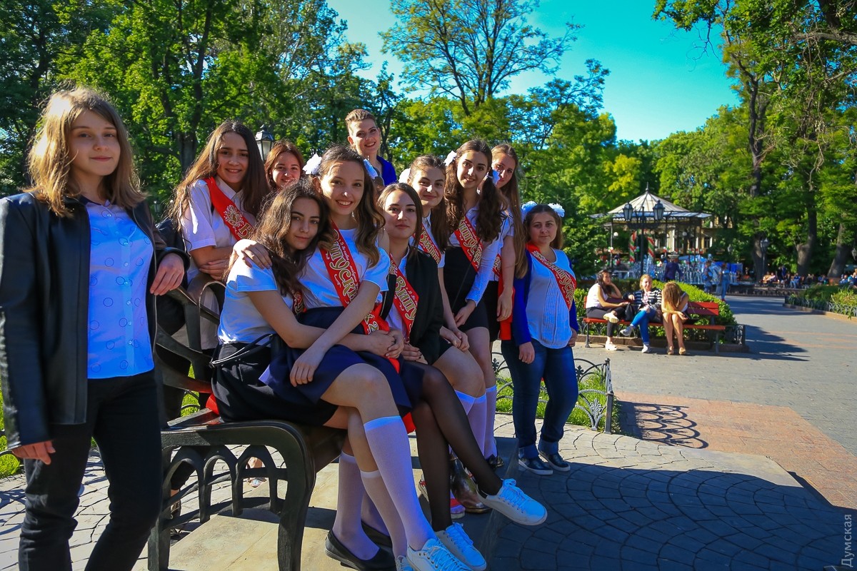 Сегодня в одесских школах прошли торжественные линейки по случаю окончания учебного года. После этого школьники разбрелись по городу. Неприличных сцен было до неприличия мало, констатирует корреспондент «Думской» Сергей Смоленцев.