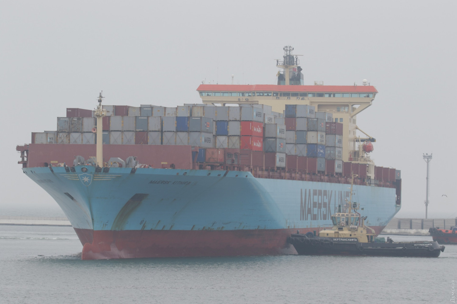 Сегодня в Одесский порт зашел последний контейнеровоз компании «Майерск». Около 15 часов огромное трехсотметровое судно Maersk Kithira пришвартовалось ко второму причалу Карантинного мола. По плану швартовочных работ контейнеровоз должен был зайти рано утром, но не позволил густой туман. Напомним, компания Maersk Line в начале марта заявила об уходе из Одессы. На 9 апреля ожидается первый заход «Майерска» на контейнерный терминал ТИС в порту Южный. СМЕРТЬ РОСІЙСЬКИМ ОКУПАНТАМ! Помітили помилку? Виділяйте слова з помилкою та натискайте control-enter |