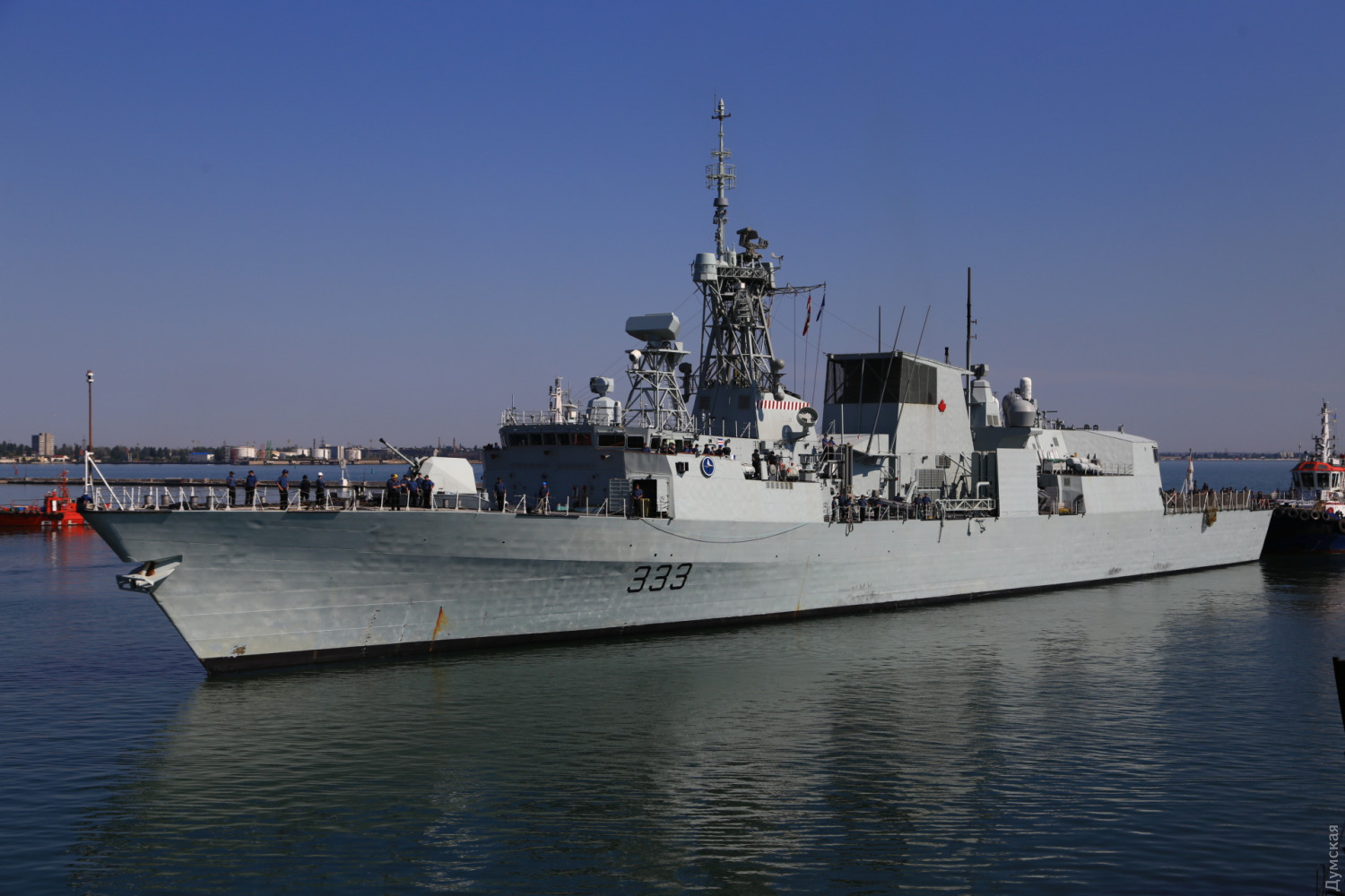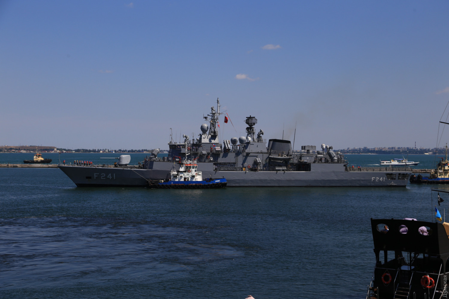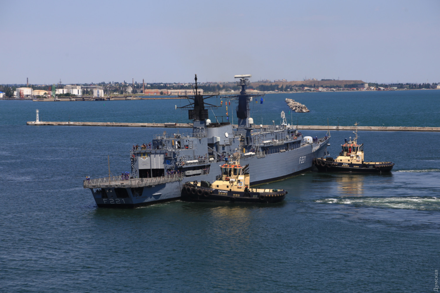 В Одесский порт заходят три фрегата НАТО и британский эсминец (фото, видео, обновлено)Сегодня утром сразу четыре корабля НАТО должны зайти в Одесский морской порт. Первым в 10 часов у 19 причала морвокзала был ошвартован флагман постоянной группы SNMG2 канадский фрегат Toronto, передает корреспондент «Думской». За ним зашел и встал у 18 причала британский эсминец D37 Duncan. Вскоре должны подойти турецкий фрегат Turgutreis и румынский Regele Ferdinand. Их поставят у 22 и 23 причалов. Вся четверка относится к постоянной группе НАТО, несущей боевое дежурство в Средиземноморье море. Флагманом группы является фрегат «Торонто». Корабли примут участие в международных учениях «Си Бриз -2019» и будут действовать в составе многонациональных сил. ОБНОВЛЕНО. Около 11 часов к 22 причалу порта был пришвартован турецкий фрегат F241 Turgutreis, а в полдень завершена постановка румынского F221 Regele Ferdinand к 23 причалу. Корабли простоят у нас до 8 июля. В День флота, 7 июля, для одесситов будут организованы экскурсии на канадский фрегат. Фото Сергея Смоленцева СМЕРТЬ РОСІЙСЬКИМ ОКУПАНТАМ! Помітили помилку? Виділяйте слова з помилкою та натискайте control-enter Новини по цій темі: 28 червня 2023: Розмінування Чорного моря: екіпажі українських тральщиків навчаються протимінних дій на "Сі Бриз-2023" 22 лютого 2023: Українські військові розвідники використовують американський вертоліт "Блекхоук" (фото) 13 січня 2022: «Си Бриз-2022»: морские пограничники из Одесской области во время учений возьмут под контроль Дунай и Днепр 10 січня 2022: В Одессе начали планировать учения «Си Бриз-2022» 28 грудня 2021: Катер-корвет, противоминные группы и рейд «Дефендера»: НАТО обеспечило постоянное присутствие кораблей в Черном море 29 листопада 2021: В парламенте зарегистрировали неотложный законопроект Зеленского о допуске вооруженных сил других государств на территорию Украины 19 липня 2021: Корабли НАТО покидают Черное море после международных учений |