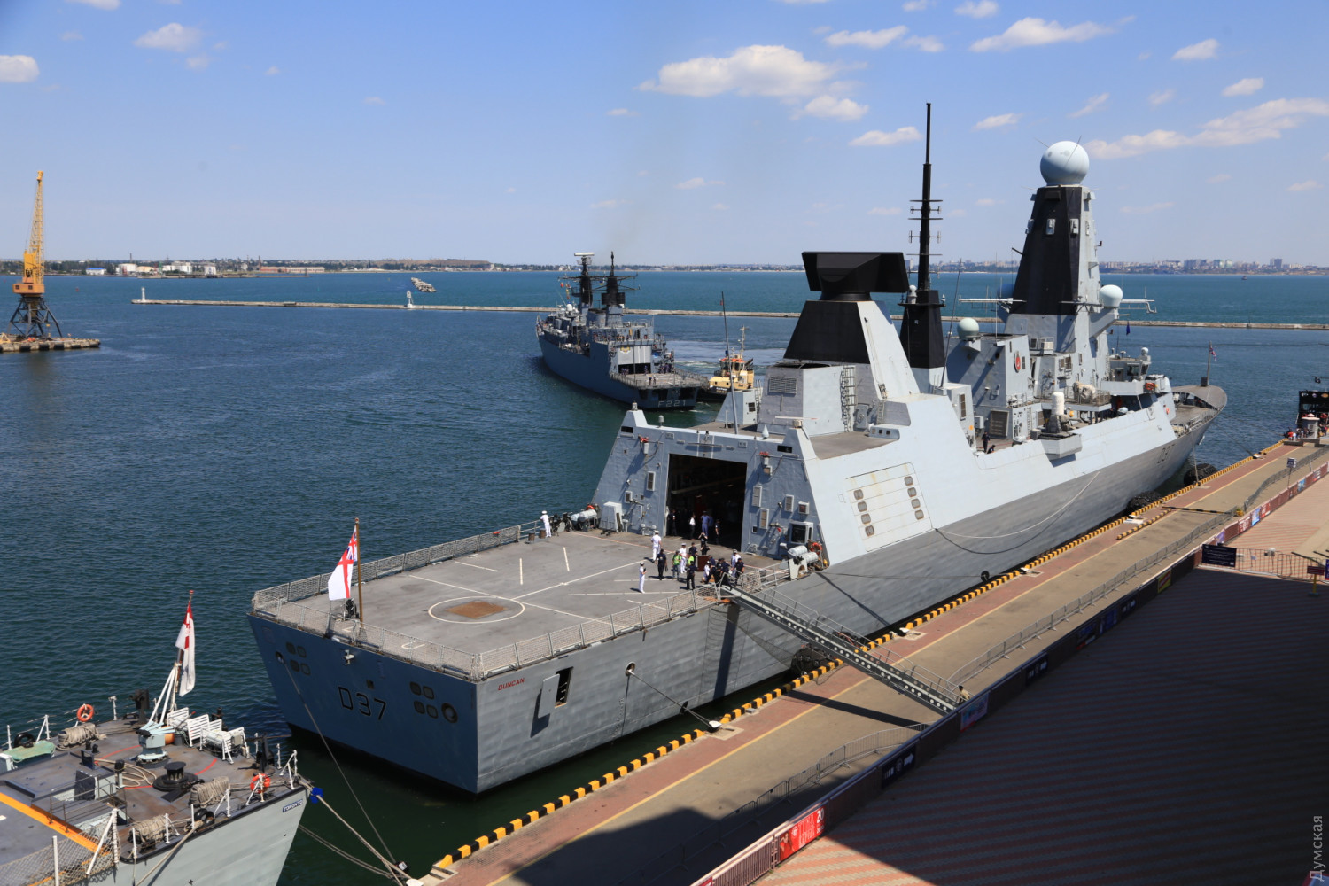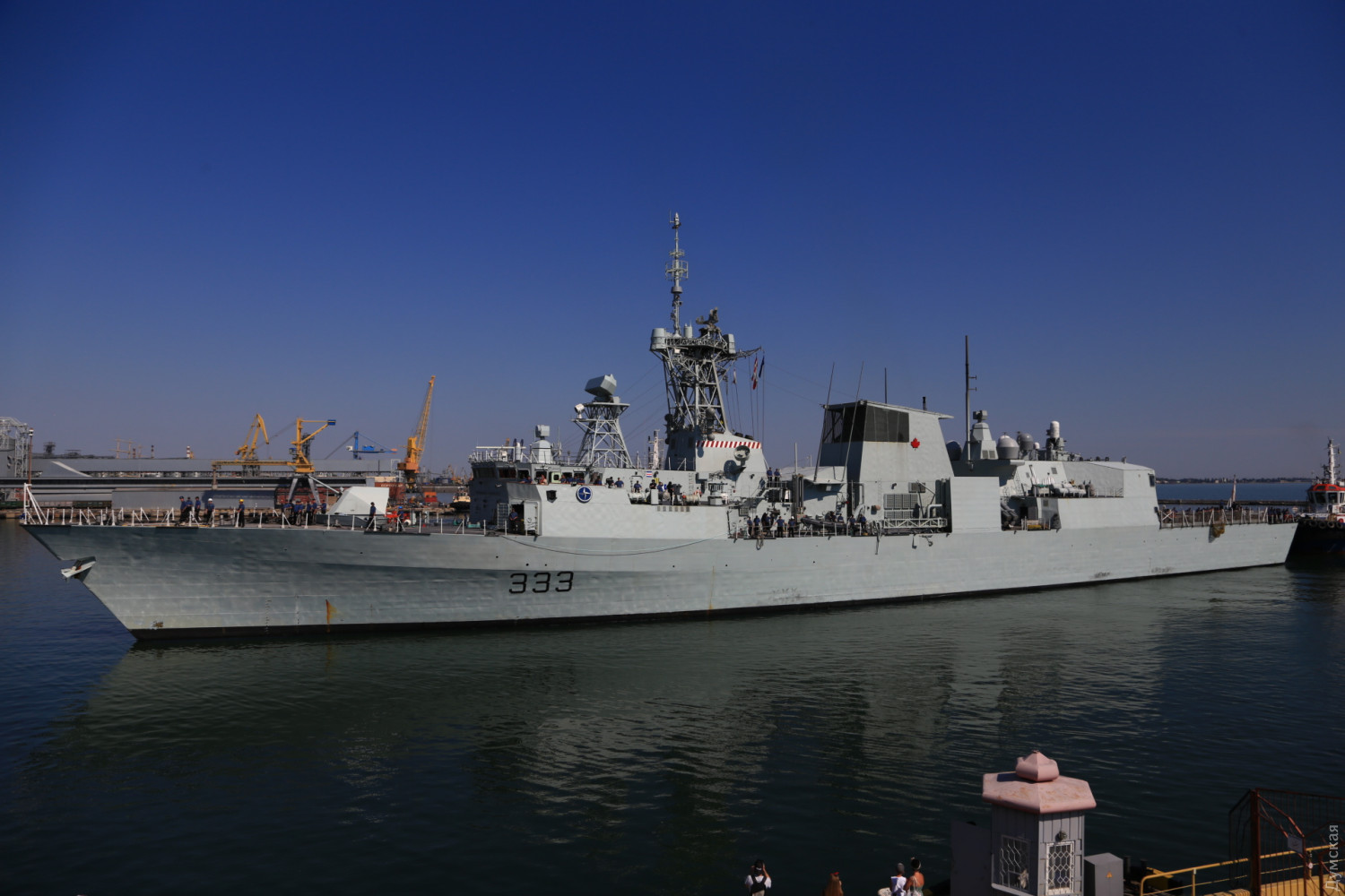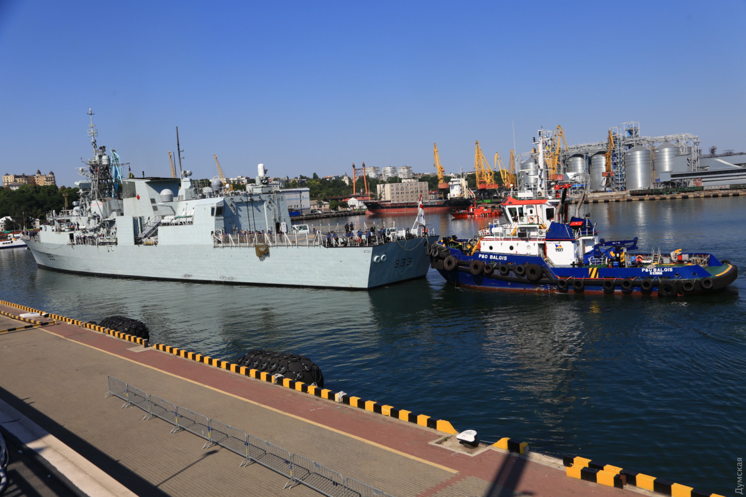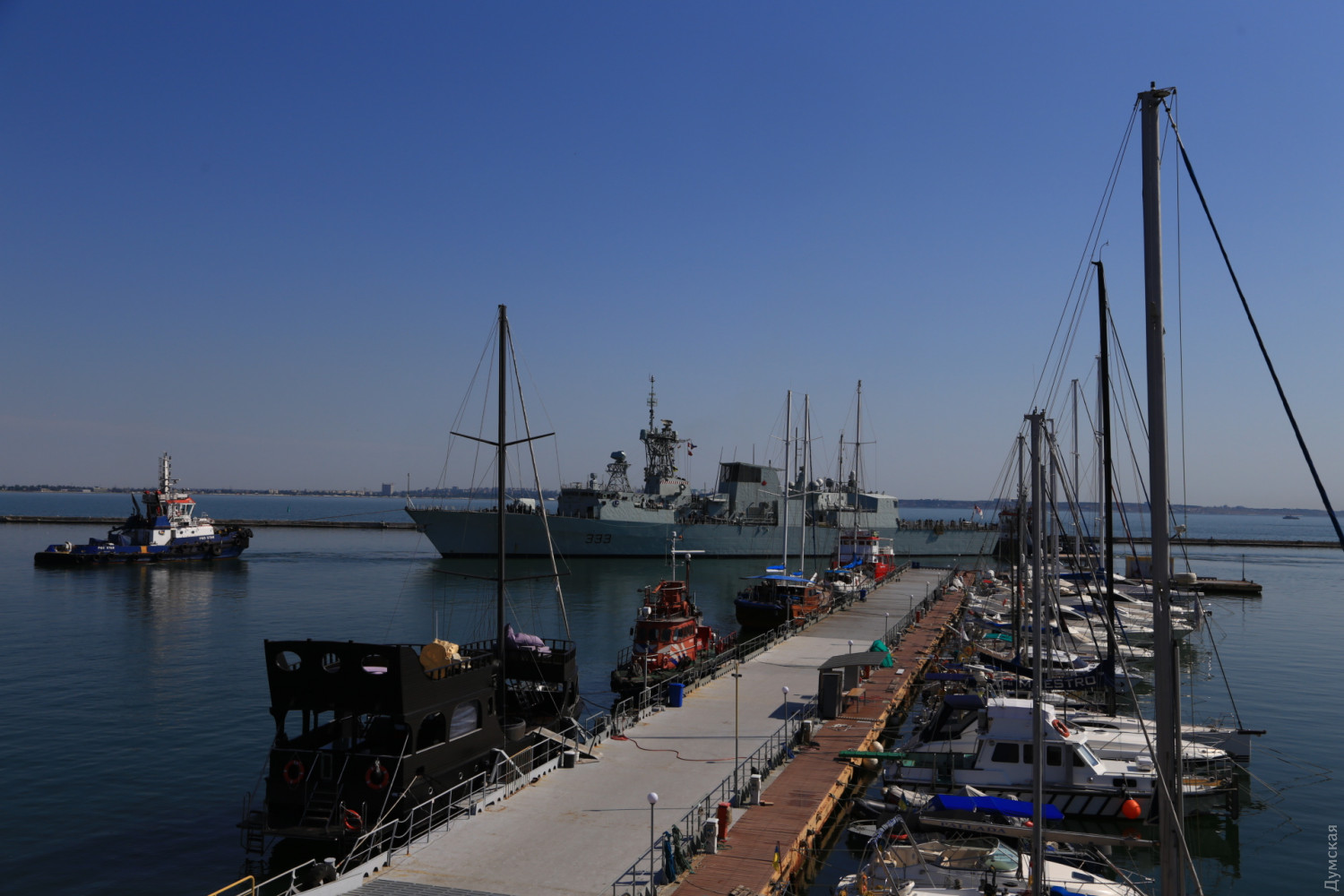 В Одесский порт заходят три фрегата НАТО и британский эсминец (фото, видео, обновлено)Сегодня утром сразу четыре корабля НАТО должны зайти в Одесский морской порт. Первым в 10 часов у 19 причала морвокзала был ошвартован флагман постоянной группы SNMG2 канадский фрегат Toronto, передает корреспондент «Думской». За ним зашел и встал у 18 причала британский эсминец D37 Duncan. Вскоре должны подойти турецкий фрегат Turgutreis и румынский Regele Ferdinand. Их поставят у 22 и 23 причалов. Вся четверка относится к постоянной группе НАТО, несущей боевое дежурство в Средиземноморье море. Флагманом группы является фрегат «Торонто». Корабли примут участие в международных учениях «Си Бриз -2019» и будут действовать в составе многонациональных сил. ОБНОВЛЕНО. Около 11 часов к 22 причалу порта был пришвартован турецкий фрегат F241 Turgutreis, а в полдень завершена постановка румынского F221 Regele Ferdinand к 23 причалу. Корабли простоят у нас до 8 июля. В День флота, 7 июля, для одесситов будут организованы экскурсии на канадский фрегат. Фото Сергея Смоленцева СМЕРТЬ РОСІЙСЬКИМ ОКУПАНТАМ! Помітили помилку? Виділяйте слова з помилкою та натискайте control-enter Новини по цій темі: 28 червня 2023: Розмінування Чорного моря: екіпажі українських тральщиків навчаються протимінних дій на "Сі Бриз-2023" 22 лютого 2023: Українські військові розвідники використовують американський вертоліт "Блекхоук" (фото) 13 січня 2022: «Си Бриз-2022»: морские пограничники из Одесской области во время учений возьмут под контроль Дунай и Днепр 10 січня 2022: В Одессе начали планировать учения «Си Бриз-2022» 28 грудня 2021: Катер-корвет, противоминные группы и рейд «Дефендера»: НАТО обеспечило постоянное присутствие кораблей в Черном море 29 листопада 2021: В парламенте зарегистрировали неотложный законопроект Зеленского о допуске вооруженных сил других государств на территорию Украины 19 липня 2021: Корабли НАТО покидают Черное море после международных учений |