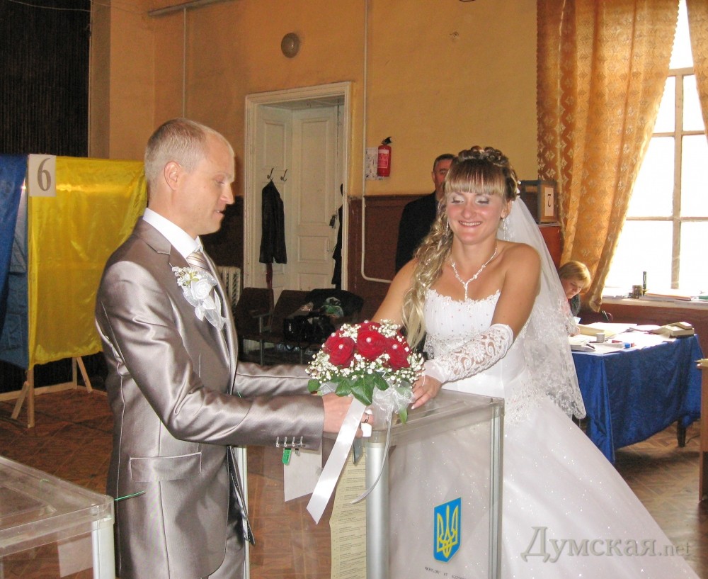 Молодожены из Савранского района Одесской области сразу после росписи в РАГСе отправились на избирательные участки по месту регистрации. Как сообщает агентство «Трасса Е-95», новоиспеченная супружеская пара — Юрий Конюченко и Наталья Майданюк — проголосовали на избирательных участках в поселке Саврань, где прописана супруга, и в селе Осички Савранского района, в котором прописан муж. ъ «Нас очень хорошо приняли члены избирательных комиссий. Под аплодисменты мы опускали бюллетени в урны. Председатель избирательной комиссии участка № 510777 Майя Руда большим букетом цветов поздравила нас с браком. Это очень приятно», — рассказала Наталья Майданюк. Уже на следующих выборах супруги Конюченко будут голосовать вместе и на одном участке. Отметим, что по словам местных жителей, молодоженов, голосующих на выборах в день свадьбы, не было уже по крайней мере 20 лет. СМЕРТЬ РОССИЙСКИМ ОККУПАНТАМ! Заметили ошибку? Выделяйте слова с ошибкой и нажимайте control-enter |