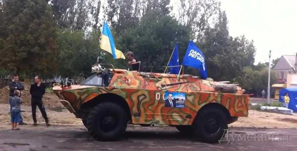 В Татарбунарах Одесской области разъезжала бронированная разведывательно-дозорная машина со знаменами Партии регионов.