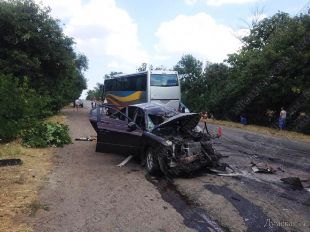 Водитель легковушки погиб на месте, пассажиры автобуса не пострадали. Погибшим оказался сотрудник управления СБУ в Одесской области. Причины ДТП устанавливает следствие.