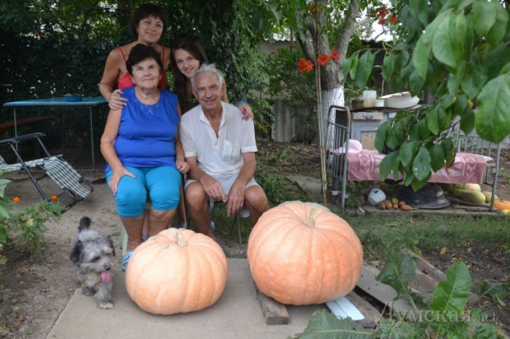 На огороде Алексея Никифоровича и Ольги Терентьевны Безымянных из Першотравневого Коминтерновского района выросли гигантские тыквы. Своим удивлением и радостью супруги решили поделиться с читателями газеты «Одесские известия». Селекцией овощей семейная пара никогда не занималась. То ли это действительно семена некоего уникального сорта, то ли обильные дожди способствовали активному росту тыкв. Самая большая потянет килограммов на 40. На снимке вместе с хозяевами их дочь Марина, внучка Аннушка и собака Кина, которая все лето стерегла огород от непрошеных гостей и также заслужила право стать героем фото. СМЕРТЬ РОСІЙСЬКИМ ОКУПАНТАМ! Помітили помилку? Виділяйте слова з помилкою та натискайте control-enter |