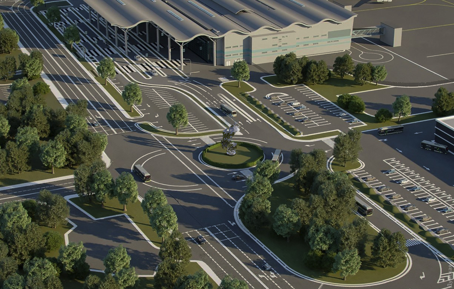В одесском аэропорту подвели итоги конкурса скульптуры: у нового терминала установят «Сферу»ООО «Международный аэропорт Одесса» подвел в День города итоги конкурса на лучшую скульптуру, которая должна быть установлена перед въездом к новому терминалу. Конкурс был объявлен 17 мая этого года и в нем участвовало больше ста проектов из многих стран. Победителем стал Степан Рябченко со скульптурой «Сфера». Призерами стали еще четыре проекта. Кроме «Сфери», жюри отметило следующие работы: Назар Билык «Стихия», Сергей Шаулис «Осколок моря», Игорь Гречаник «Прикосновение неба» и Александр Гусарев «Жемчужина у моря». «Сфера» — это проект интерактивной скульптуры, состоящей из led-панелей, которые образуют огромный сферический экран. Сфера — универсальный символ и одна из самых совершенных форм, заключающая в себе целый мир. В данном контексте сфера служит и воплощением Земного шара, открывающего все свои, даже самые удаленные уголки перед путешественником, и солнца, и символизирует очертания первой буквы слова «Одесса», воплощенную в объеме. Разнообразие смыслов отражается в постоянно меняющемся облике объекта за счет варьирующейся, специально созданной авторской компьютерной анимации», — говорится в пояснении к проекту. Волны, ветер и капли морской воды стали объединенным мотивом для скульптуры Назара Билыка «Стихия». По задумке автора, шестиметровый монумент должен быть изготовлен из нержавеющей стали. Скульптура Игоря Гречаника «Прикосновение неба» символизирует свободу и свободный город. Основной объект — птица высотой от 10 метров и выше. Материал — металл и полимеры, обладающие хорошими светоотражающими свойствами. Скульптура подсвечивается лазерными LED-прожекторами и должна менять цвет от бело-голубого и зелено-желтого до оранжево-красно-фиолетового и вновь белого (можно запрограммировать постепенное изменение цвета). Фактура скульптуры рельефная, состоит из отдельных мозаичных прямоугольных элементов, которые подчеркивают структуру крыльев птицы, в то же время эти механистические элементы приближают к идее самолета. Скульптура может возвращаться вокруг своей оси, но может быть и неподвижной. Коловорот, который лег в основу композиции Сергея Шаулиса «Осколок моря», дает чувство насыщенности жизни в аэропорту. По задумке автора, аэропорт часто находится в центре многих событий, поэтому вокруг него образуется коловорот. Морская тематика скульптуры задумана, чтобы люди, прилетевшие в Одессу, сразу ощущали дыхание моря. Материал — стекло, сталь, бронза. Проект Александра Гусарева «Жемчужина у моря» представляет собой стилизованную раковину из никелированных труб, внутри которой находится жемчужина. Трубы высотой 13 метров и диаметром 7 метров образуют арку, в которую можно войти, чтобы увидеть жемчужину. Объект может стать фотозоной как внутри, так и снаружи, ее будет видно даже из салона самолета на подлете к аэропорту. ОБНОВЛЕНО Только что стало известно, что одесский аэропорт решил наградить еще одного участника конкурса на лучшую скульптуру. Им стала Ирина Андрийчук с работой под названием «Одесса, мама!». В этой работе автор хотела показать вечно юную и упорную Одессу, которая всегда готова к новым свершениям. Ирина предложила использовать современные материалы на основе полиэфирных и эпоксидных смол
