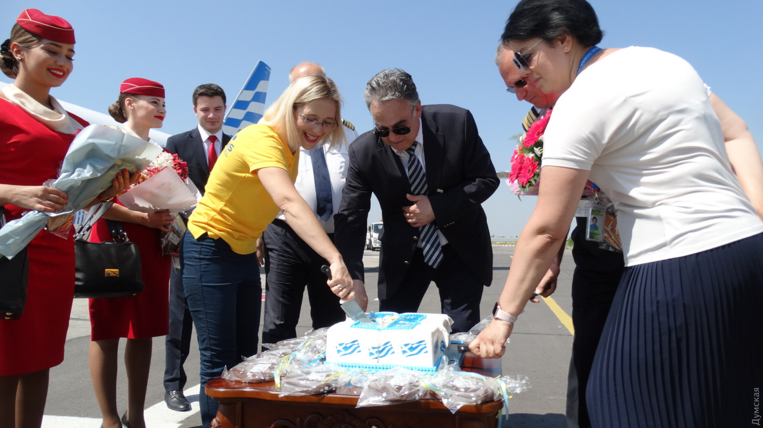 Сегодня в Международном аэропорту «Одесса» установили национальный рекорд Украины — представители авиакомпании Ellinair и туроператора «Музенидис Трэвел» развернули самый большой флаг Греции в честь пятилетия рейсов по направлению Салоники – Одесса – Салоники. Результат зарегистрировали в национальном реестре рекордов, а представитель организации Екатерина Чегеринская сказала, что событие вскоре появится и в Книге рекордов Украины. Сразу после фиксации достижения в Одессе встречали юбилейный рейс из Салоник. В честь этого события и по случаю Дня защиты детей туроператор организовал праздник для всех маленьких пассажиров и дарил подарки. Директор представительского офиса туроператора «Музенидис Трэвел» в Одессе Ольга Кобзарь поприветствовала своих греческих коллег и туристов, которые возвращались из Греции в Украину. «Наш флаг-рекордсмен оказался даже больше, чем мы себе представляли. Я хочу, чтобы каждый житель Одессы смог полететь с нами в Грецию и получить максимум удовольствия от путешествия», — сказала Ольга. Полотнище размером 20 на 40 метров развернули за несколько минут до прибытия Boeing737 авиакомпании Ellinair, и в момент приземления пассажиры могли наблюдать флаг Греции на украинской земле. После прохождения паспортного контроля все пассажиры и посетители аэропорта могли пообщаться и сфотографироваться со стюардессами и пилотами Ellinair. Командир воздушного судна Фердинандо Агриппа сказал, что был рад совершить юбилейный рейс в Одессу. «Этот самолет — один из самых больших и безопасных воздушных судов, — рассказал пилот. — Мы прилетаем в Одессу пока что один раз в неделю по субботам, но надеюсь, что уже в ближайшем будущем из Одессы будет подниматься в небо много таких самолетов». Рейс из Салоник встретили традиционной водяной аркой, а пассажиры самолета прошли по красной дорожке. Их приветствовали с тортом и цветами представители авиакомпании, туроператора и исполняющий обязанности Почетного консула Греции в Украине Спиридон Мокас. По словам дипломата, который вот уже восемь лет работает в Украине, одной из самых больших проблем была перевозка пассажиров из Греции в Одессу и обратно, но благодаря «Музенидис Трэвел» сегодня удается без задержек и лишних трат совершать перелеты. «Я желаю, чтобы компания и полетная программа в Грецию развивалась, а вместе с ней и международные общественные связи Украины и Греции», — отметил Спиридон Мокас. Напомним, компания Ellinair — греческий авиаперевозчик, основанный в 2013 году, который базируется в международном аэропорту «Македония» города Салоники. Ellinair входит в холдинг Mouzenidis Group наряду с ведущим туроператором Греции «Музенидис Трэвел», VIP-департаментом Elion Club, компаниями Active MICE, Mouzenidis Intour и другими подразделениями. Маршрутная сеть компании объединяет более трех десятков направлений. СМЕРТЬ РОСІЙСЬКИМ ОКУПАНТАМ! Помітили помилку? Виділяйте слова з помилкою та натискайте control-enter Новини по цій темі: 18 квітня 2024: Ексмер Одеси Олексій Костусєв ховається від слідства в елітному районі Лондона: стала відома його адреса 29 березня 2024: Справа про заволодіння аеропортом "Одеса": ексвіцемер Орловський відбувся умовним терміном 28 лютого 2024: Відкрити українське небо: чим Бориспіль відрізняється від Бен-Гуріона і що потрібно зробити для відновлення авіасполучення? 23 лютого 2024: Кос