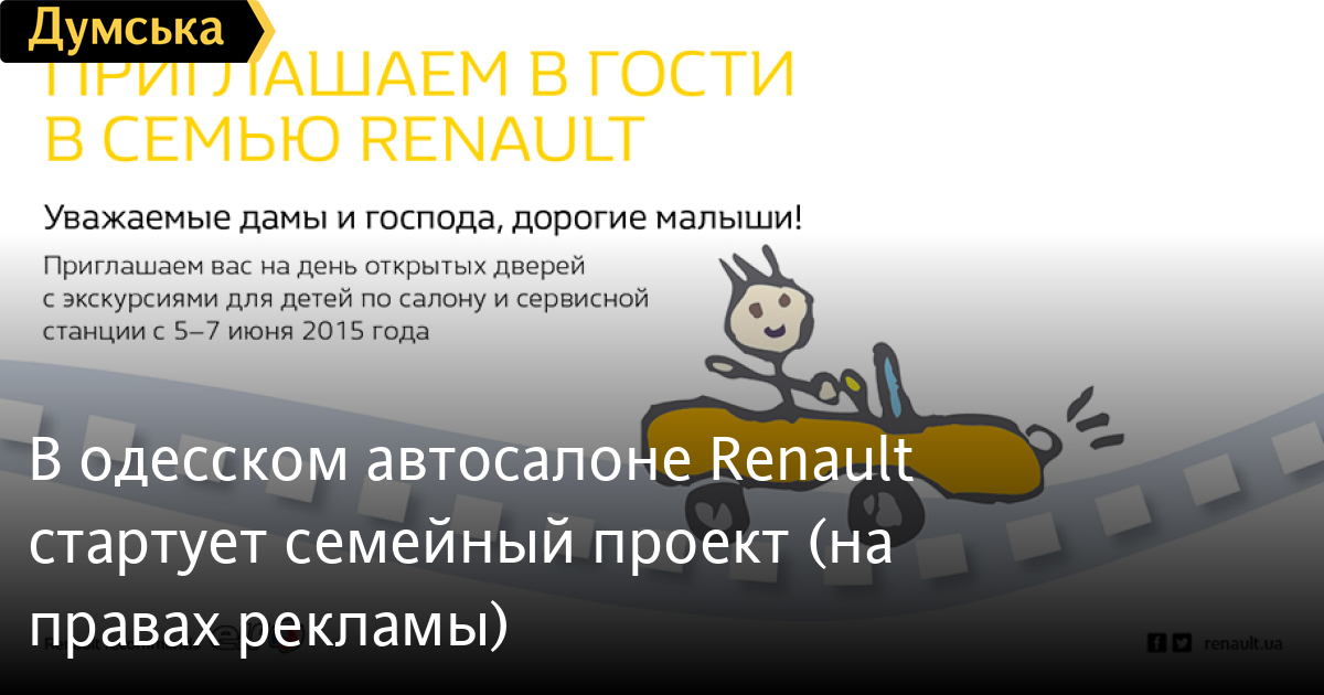 C 5 по 7 июня в дилерской сети Renault стартует новый проект «Renault FamilyDays», который пройдет в формате дней открытых дверей для детей и их родителей. Как сообщили в компании, 2015 год является особенным годом для Renault в Украине. Этот год знаменует 15-летие компании на украинском рынке. В Украине компания Renault насчитывает 36 дилерских точек, где трудоустроено более 1 000 чел», — отметили в компании. «Весь этот многолетний период вместе c нашими клиентами мы росли, взрослели и развивались. Мы гордимся нашей дилерской сетью и профессионализмом сотрудников. Мы хотим открыть двери наших дилерских центров перед существующими и будущими клиентами и провести Тур по дилерскому центру. Это будет увлекательное времяпрепровождение для всей семьи», — говорит председатель правления Renault в Украине Яна Миненко. В рамках визита вы сможете: познакомиться с автосалоном и его работой, а также с несколькими моделями Renault; узнать, на основании каких критериев клиент выбирает себе автомобиль; увидеть процесс торжественной передачи автомобиля клиенту; посмотреть работу сервисной станции; получить знания о строении автомобиля. В рамках проекта также предусмотрена развлекательная программа для детей и их родителей. «Во время увлекательных бесплатных часовых экскурсий представится уникальный шанс пройти весь путь клиента Renault в дилерском центре, а также открыть для себя мир автобизнеса на примере работы официального дилера Renault», — заключили в компании. Автосалон «АИС АВТО-ЮГ» ждет всех в салоне Renault по адресу: ул. Атамана Головатого, 113 с 5 по 7 июня, ежедневно с 11:00 до 13:00 и с 14:00 до 16:00. Справки по телефону (048) 738-69-81. Напомним, в апреле 2015 года бренд Renault занял первое место с долей 8,9% на украинском автомобильном рынке легковых и коммерческих автомобилей массой до 3,5 т (данные Auto-Consulting).По итогам четырех месяцев бренд удерживает первую позицию с рыночной долей в 8,1%. СМЕРТЬ РОССИЙСКИМ ОККУПАНТАМ! Заметили ошибку? Выделяйте слова с ошибкой и нажимайте control-enter |