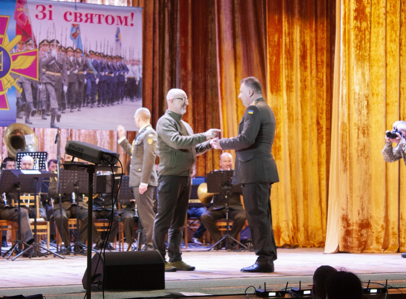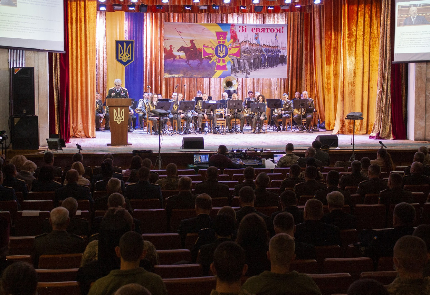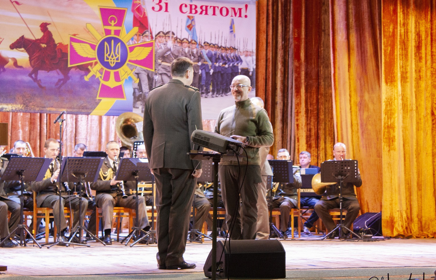 6 декабря по случаю 30-летия создания Вооруженных сил Украины в одесском Доме офицеров руководство ВСУ, области и представители духовенства поздравили личный состав воинских частей Одесского гарнизона с их профессиональным праздником. Торжественное мероприятие началось с исполнения гимна Украины и приветственного слова командующего оперативного командования «Юг» Сухопутных войск Вооруженных сил Украины, Героя Украины, генерал-майора Андрея Ковальчука, который поздравил военнослужащих с профессиональным праздником и вручил награды. Кроме того, военных приехал лично поздравить Министр обороны Украины Алексей Резников. Министр отметил, что «наша армия как никогда сильна и боеспособна». Также личный состав воинских частей Одесского гарнизона поздравили председатель ОГА Сергей Гриневецкий, глава Одесского облсовета Григорий Диденко и его первый заместитель Олег Радковский, вручив военным почетные грамоты за отменное несение службы. После официальной части мероприятия началась концертная программа центра военно-музыкального искусства Военно-морских сил ВСУ. СМЕРТЬ РОСІЙСЬКИМ ОКУПАНТАМ! Помітили помилку? Виділяйте слова з помилкою та натискайте control-enter |