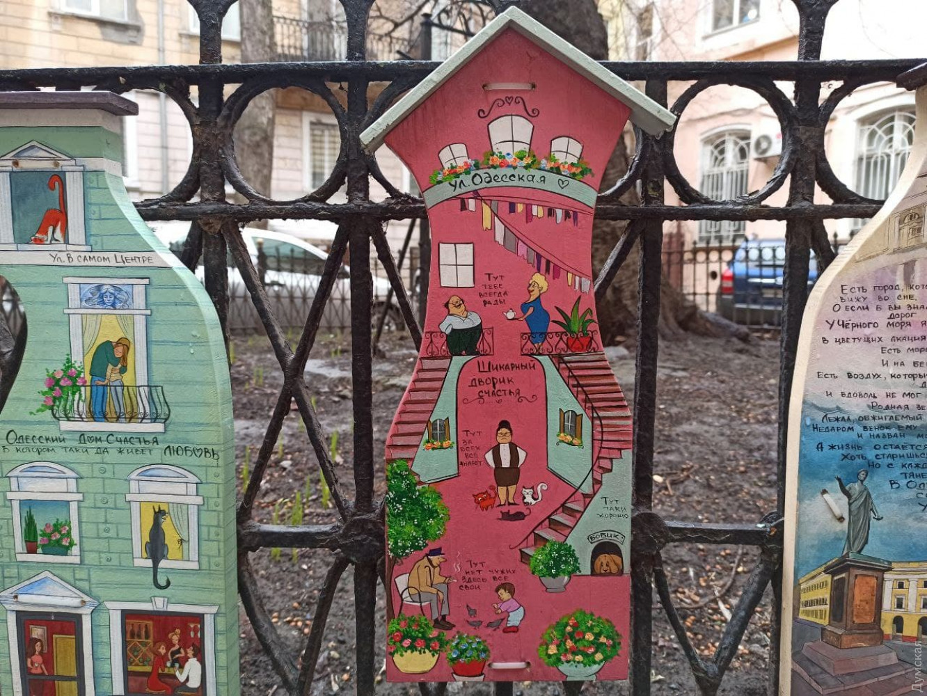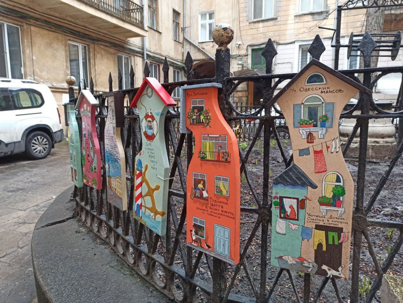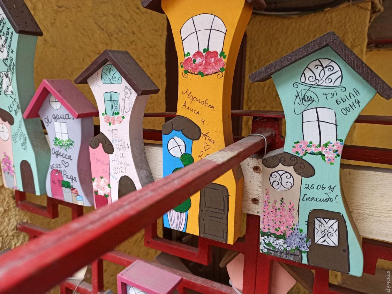 «Точка счастья»: в одесском дворике на Гоголя есть 300 необычных домиков и сердце с пожеланиямиНеобычная достопримечательность поселилась в уютном дворике по улице Гоголя – серый пейзаж бетонных стен разбавляет серия деревянных табличек с веселыми надписями и разноцветное сердце, собранное из трех сотен мини-домиков. Не случайно улица Гоголя считается одной из самых атмосферных в Одессе. «Дом с атлантами» Фальц-Фейна, «пряничный дом» Заблудовского и колоритные дворики этой улицы можно увидеть в более чем полсотни кинолентах. Сегодня мы расскажем об относительно новой достопримечательности, которую еще не успели снять в кино. Это инсталляция, которая примерно год назад появилась во дворе дома №6. Кованный забор, который окружает старинный колодец посреди двора, украшают деревянные таблички в форме асимметричных домиков. У каждого из них – свой адрес. К примеру, в домике на улице Одесских мансов сушат белье на улице, в домике на улице Сплошного удовольствия балом правят кошки разных мастей, на улице Одесской живет пес по кличке Бобик, а дети кормят голубей крошками. Зайдя во двор, видим балкон с разноцветными горшочками для цветов и указатель, который приглашает пройти дальше и найти «точку счастья». Когда способствует погода и эпидситуация, в этот двор водят экскурсии, но нам не повезло ни с тем, ни с другим. Мы попали сюда, когда шел дождь, а Одесса находилась в «красной» зоне по COVID-19, поэтому ни бабуля со второго этажа, ни рыжий кот по кличке Царь нас не встречали. Пришлось ориентироваться на местности самостоятельно. Проходим в арку и замечаем на стене дома внушительный арт-объект – двухметровое пестрое сердце, состоящее из трех сотен деревянных домиков. На каждом есть своя подпись с мечтами и пожеланиями. Прямо под этим «сердцем» в полуподвальном помещении еще вчера был магазинчик сувениров, где можно было приобрести эти самые кривые домики. Но сегодня, не выдержав локдауна, арендаторы съезжают из дворика насовсем. Хозяйка лавки – Анна Мамонтова начала заниматься таким хенд-мейдом десять лет назад. По профессии она эколог, но всегда мечтала о карьере художника. Мечта сбылась в сознательном возрасте, когда у женщины родился ребенок. «Сначала эти домики служили ограничителями для книг, а потом уже стали самостоятельными объектами. Я захотела показать, что все домики и дворики разные и что в каждом живет любовь и гармония», — рассказывает Анна. Первое время домики делали в творческом тандеме с мужем – супруг выпиливал причудливые формы из сосны, а Анна брала на себя художественную часть. А когда продажи стали расти, супруги обзавелись станком для резки, а к росписи привлекли художников. Сегодня, говорит Анна, трудно вспомнить уголок на карте мира, куда бы не уехал такой сувенир из Одессы. Все потому, что это не просто сувенир, а своего рода символ, который частенько исполняет желания. «Было масса случаев, когда заказчики просили нас изобразить на нем аиста с ребенком и через время у этих людей появлялся малыш. Или, к примеру, просили сделать надпись «Наш будущий дом», и в дальнейшем эти мечты у них сбывались. А один раз девочка просила изобразить любовь в Париже, мы нарисовали Эйфелеву башню и силуэты влюбленных на лавочке. Так вот через год она нам прислала фотографию точь-в-точь как на домике. Все зависит от того, какие эмоц