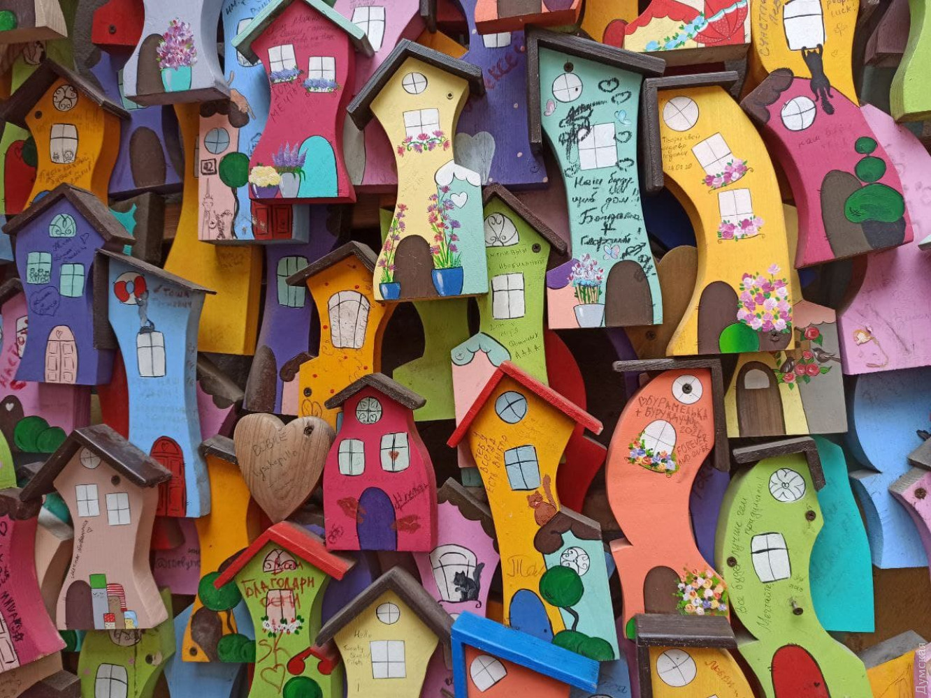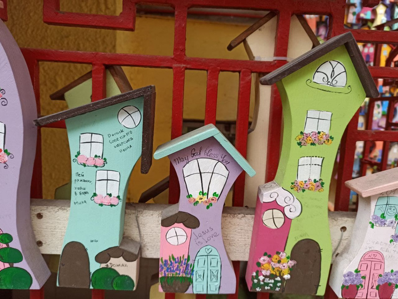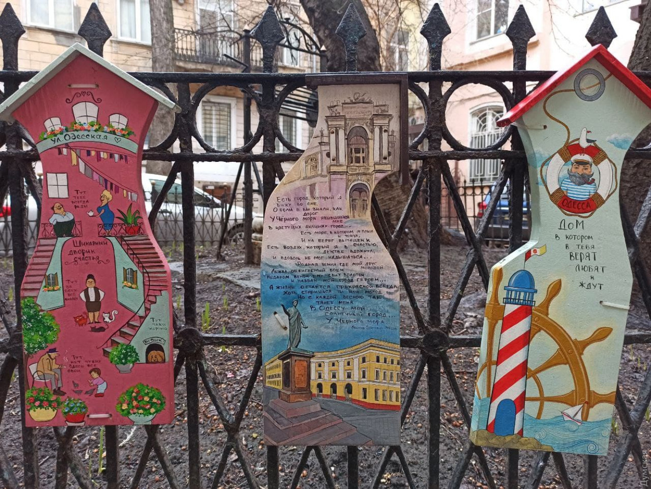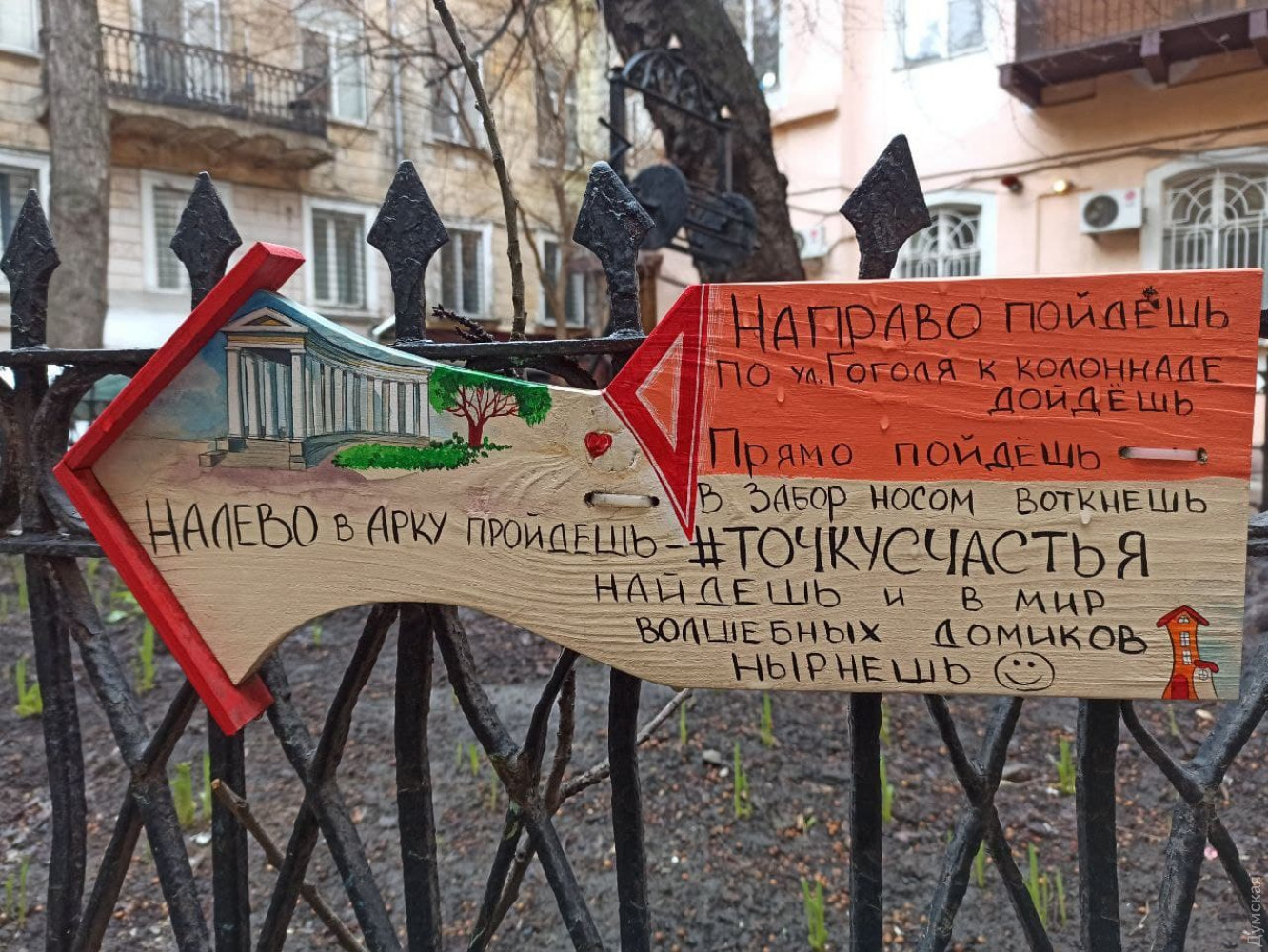 «Точка счастья»: в одесском дворике на Гоголя есть 300 необычных домиков и сердце с пожеланиямиНеобычная достопримечательность поселилась в уютном дворике по улице Гоголя – серый пейзаж бетонных стен разбавляет серия деревянных табличек с веселыми надписями и разноцветное сердце, собранное из трех сотен мини-домиков. Не случайно улица Гоголя считается одной из самых атмосферных в Одессе. «Дом с атлантами» Фальц-Фейна, «пряничный дом» Заблудовского и колоритные дворики этой улицы можно увидеть в более чем полсотни кинолентах. Сегодня мы расскажем об относительно новой достопримечательности, которую еще не успели снять в кино. Это инсталляция, которая примерно год назад появилась во дворе дома №6. Кованный забор, который окружает старинный колодец посреди двора, украшают деревянные таблички в форме асимметричных домиков. У каждого из них – свой адрес. К примеру, в домике на улице Одесских мансов сушат белье на улице, в домике на улице Сплошного удовольствия балом правят кошки разных мастей, на улице Одесской живет пес по кличке Бобик, а дети кормят голубей крошками. Зайдя во двор, видим балкон с разноцветными горшочками для цветов и указатель, который приглашает пройти дальше и найти «точку счастья». Когда способствует погода и эпидситуация, в этот двор водят экскурсии, но нам не повезло ни с тем, ни с другим. Мы попали сюда, когда шел дождь, а Одесса находилась в «красной» зоне по COVID-19, поэтому ни бабуля со второго этажа, ни рыжий кот по кличке Царь нас не встречали. Пришлось ориентироваться на местности самостоятельно. Проходим в арку и замечаем на стене дома внушительный арт-объект – двухметровое пестрое сердце, состоящее из трех сотен деревянных домиков. На каждом есть своя подпись с мечтами и пожеланиями. Прямо под этим «сердцем» в полуподвальном помещении еще вчера был магазинчик сувениров, где можно было приобрести эти самые кривые домики. Но сегодня, не выдержав локдауна, арендаторы съезжают из дворика насовсем. Хозяйка лавки – Анна Мамонтова начала заниматься таким хенд-мейдом десять лет назад. По профессии она эколог, но всегда мечтала о карьере художника. Мечта сбылась в сознательном возрасте, когда у женщины родился ребенок. «Сначала эти домики служили ограничителями для книг, а потом уже стали самостоятельными объектами. Я захотела показать, что все домики и дворики разные и что в каждом живет любовь и гармония», — рассказывает Анна. Первое время домики делали в творческом тандеме с мужем – супруг выпиливал причудливые формы из сосны, а Анна брала на себя художественную часть. А когда продажи стали расти, супруги обзавелись станком для резки, а к росписи привлекли художников. Сегодня, говорит Анна, трудно вспомнить уголок на карте мира, куда бы не уехал такой сувенир из Одессы. Все потому, что это не просто сувенир, а своего рода символ, который частенько исполняет желания. «Было масса случаев, когда заказчики просили нас изобразить на нем аиста с ребенком и через время у этих людей появлялся малыш. Или, к примеру, просили сделать надпись «Наш будущий дом», и в дальнейшем эти мечты у них сбывались. А один раз девочка просила изобразить любовь в Париже, мы нарисовали Эйфелеву башню и силуэты влюбленных на лавочке. Так вот через год она нам прислала фотографию точь-в-точь как на домике. Все зависит от того, какие эмоц