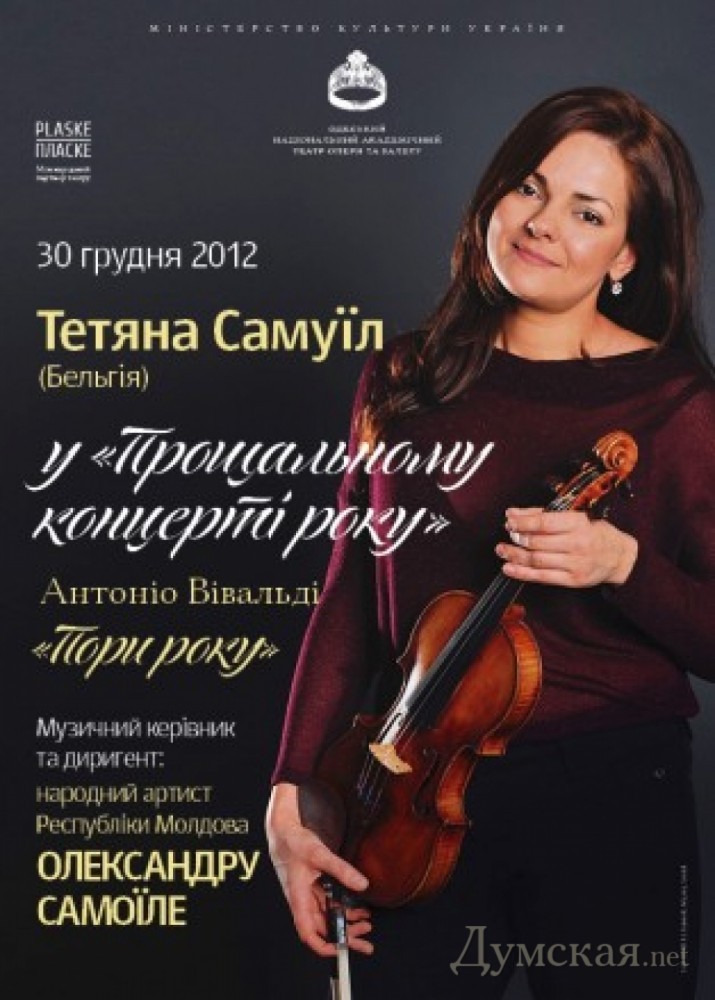 На новогодний концерт Одесского национального академического театра оперы и балета пригласили солистку, которая играет на скрипке Страдивари 1717 года. Об этом сообщает пресс-служба театра. «Программа прощального концерта 2012 года – разноплановая. В первом отделении прозвучит концерт Антонио Вивальди «Времена года» в исполнении оркестра театра и приглашенной солистки, скрипачки Татьяны Самуил. Концерт пройдет 30 декабря. Татьяна – лауреат, в частности, Международного конкурса Королевы Елизаветы и профессор Бельгийской академии музыки. Она играет на скрипке Страдивари, некогда принадлежавшей легендарному скрипачу Фрицу Крейслеру. СМЕРТЬ РОСІЙСЬКИМ ОКУПАНТАМ! Помітили помилку? Виділяйте слова з помилкою та натискайте control-enter |