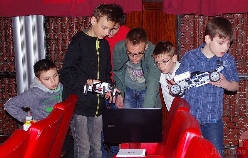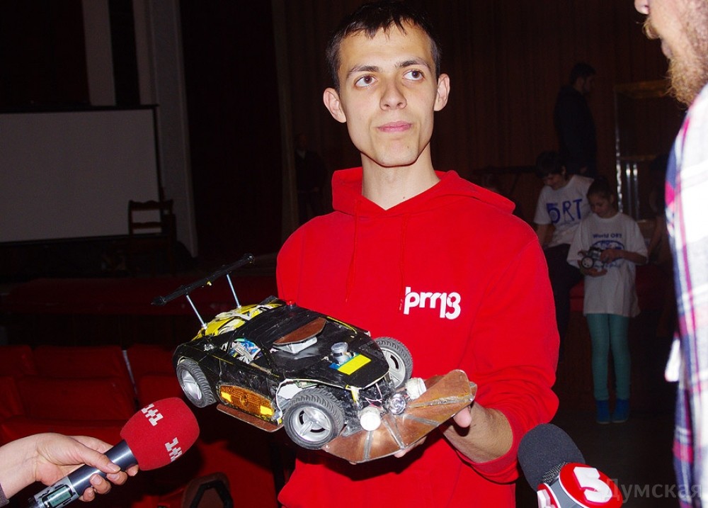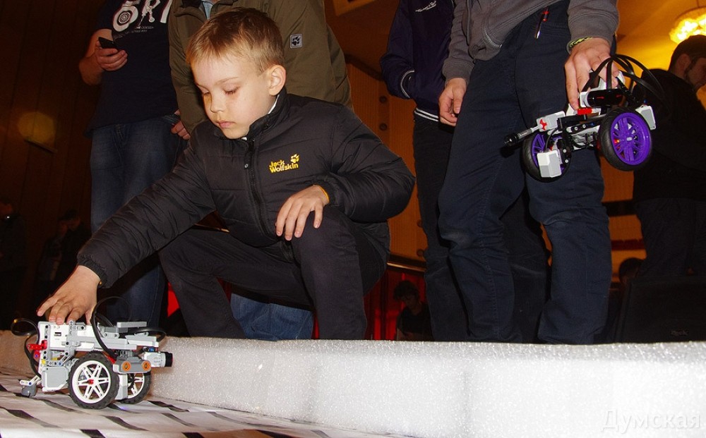 Одесский политехнический университет снова привлекает внимание. И не приевшимися унылыми конференциями или пошлой номенклатурной рекламой, а настоящим событием — сегодня в его ДК проходят гонки роботов. Гонки самые настоящие: с болидами, зрителями, авариями, обслуживающими командами и призами. «Думская» понаблюдала за состязанием высоколобых и их технологических детищ. Главное отличие от настоящего автоспорта — машинки ездят самостоятельно, без участия пилота: управление и реакцию на изменения дорожной ситуации обеспечивают микроконтроллеры. Собственно, в программировании этих самых контроллеров и соревнуются участники, хотя от инженерных решений тоже многое зависит. Роборалли проходит в трех возрастных категориях. В первой соревнуются дети, которые собрали свои болиды из одного из вариантов конструктора «Лего» с программируемым управляющим модулем. Такие машинки ездят не шибко быстро, но они более доступны как для школьников, так и для их родителей: покупаешь коробку с деталями, собираешь аппарат по инструкции. Специальным ПО из той же коробки можно задать модель поведения при тех или иных ситуациях, и робот готов. Входные данные обеспечивают миниатюрные ультразвуковые излучатели, которые также входят в комплект. Гонками состязания в этой категории назвать трудно: аппараты преодолевают один круг пустой трассы. Кто затратил меньше времени, тот и победил. Если машинка с искусственным интеллектом внезапно запутается, ее всегда можно поправить — штрафов за это не начисляют. Главное — чтобы батарейки не сели. Средняя категория отличается от младшей лишь тем, что алгоритм работы робомашин должен быть как можно более оптимизирован: за каждое вмешательство начисляются штрафные баллы, которые могут серьезно повлиять на результат. Настоящие гонки — в старшей категории. Участники и болиды собирают самостоятельно, и программное обеспечение создают. И если на первые две категории претендуют лишь одесские школьники, то за первенство в старшей борются команды из нескольких городов Украины. Рассказывает доцент кафедры фотоники Национального университета «Львовская политехника» Василий Татарин: «Нас из Львова приехала целая команда, ну а я в ней - капитан. Будем принимать участие в дисциплине «Роборейс». Для ребят эти гонки — и способ самореализации, и возможность пообщаться со сверстниками в неформальной обстановке. Для преподавателей такие вещи — отличное подспорье к программе обучения. В учебном плане на программирование микроконтроллеров выделено 4 часа. А чтобы заставить такую машинку самостоятельно объехать препятствие, студентам нужно потратить целый месяц, причем работать ежедневно. Естественно, я рад и горд за тех студентов, которые участвуют в таких гонках. Они далеко пойдут!» Одессу представляет Боря, 19-летний студент Политеха. Третекурсник из ИКСа делится с читателями «Думской»секретом, как победить в гонках роботов: «К сожалению, за наш город я буду ехать в гордом одиночестве, — рассказывает начинающий гонщик-программист. — У нас было несколько болидов, но предварительные испытания прошел только мой. Какой смысл выставлять на трассу машину, если ты в ней не уверен? Зато моя «Гравицапа» учитывает практически все слабые места соперников. Дело в том, что на нашей трассе не нужно очень сильно разгонять