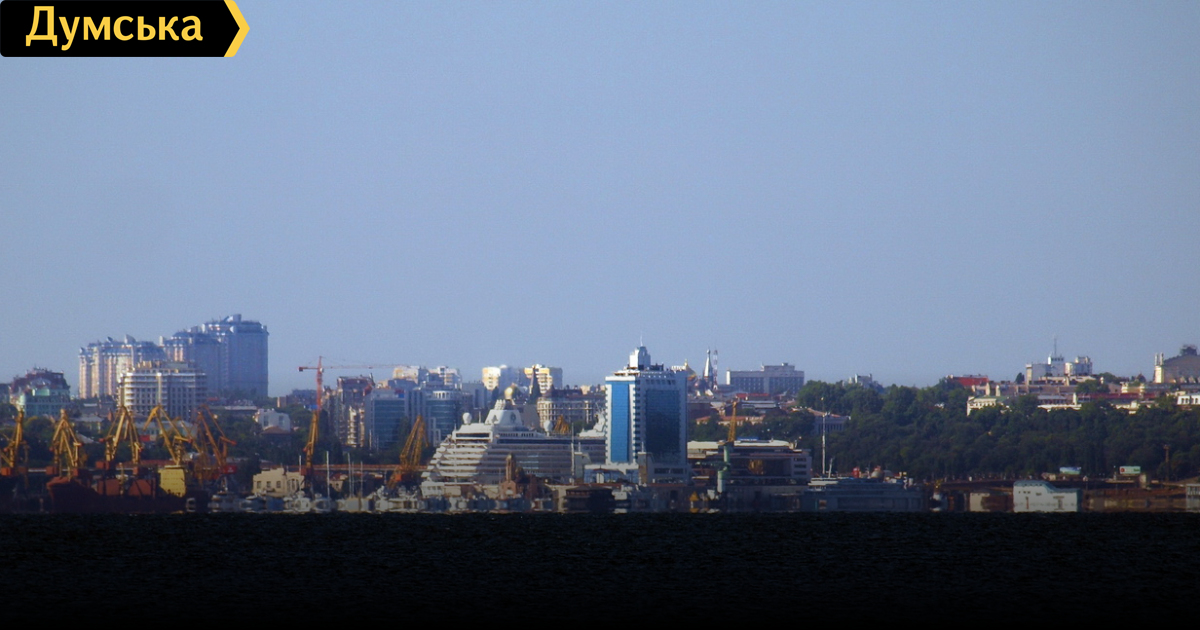 Панорама центра Одессы, у морского вокзала стоит лайнер "Crystal Serenity"