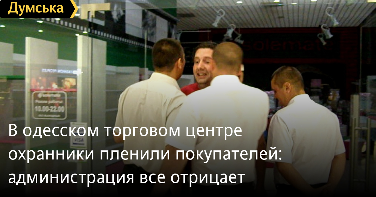 В одесском торговом центре охранники пленили покупателей: администрация все отрицаетВ редакцию «Думском» прислали три видеоролика, на которых запечатлено, как в одном из магазинов торгово-развлекательного комплекса «Ривьера» охранники пытаются силой задержать покупателей. Мы связались с автором видео. Им оказался адвокат Анатолий Федоров, который в настоящее время представляет интересы владельцев магазина в суде против руководства ТРЦ. По его словам, предприниматели арендуют в «Ривьере» помещение, руководство последней решило, что арендаторы задолжали и зачем-то втянуло в спор покупателей. Трое охранников заблокировали двери магазина и отказывались выпускать людей с купленным товаром. На вопрос корреспондента, почему полки магазина пусты, юрист ответил: «Там продавали обувь, дела шли не очень, они решили закрыться, свернулись и в тот день (5 июля, — Ред.)устроили финальную распродажу». Анатолий добавил, что оба покупателя – и мужчина, и женщина с ребенком — дождались приезда милиции и написали заявление. Владельцы же магазина через суд требуют расторжения договора с «Ривьерой». В администрации торгового центра информацию о том, что их охранники задерживали покупателей, не имея на то причин, опровергают. «Наша охрана отвечает за порядок в торговой галерее, а не в магазине. Магазин, если хочет, нанимает свою охрану. Если арендаторы задолжали, не имеют права торговать, но уходить не хотят, мы выключим им электричество, и то предупредим об этом заранее. А что касается данного магазина, то он вообще давно закрылся, помещение сдано другим людям, а финальная распродажа, если и была, то месяца четыре назад», — сказала менеджер Виктория. «Думская» готова опубликовать мнения других участников конфликта СМЕРТЬ РОССИЙСКИМ ОККУПАНТАМ! Заметили ошибку? Выделяйте слова с ошибкой и нажимайте control-enter |
