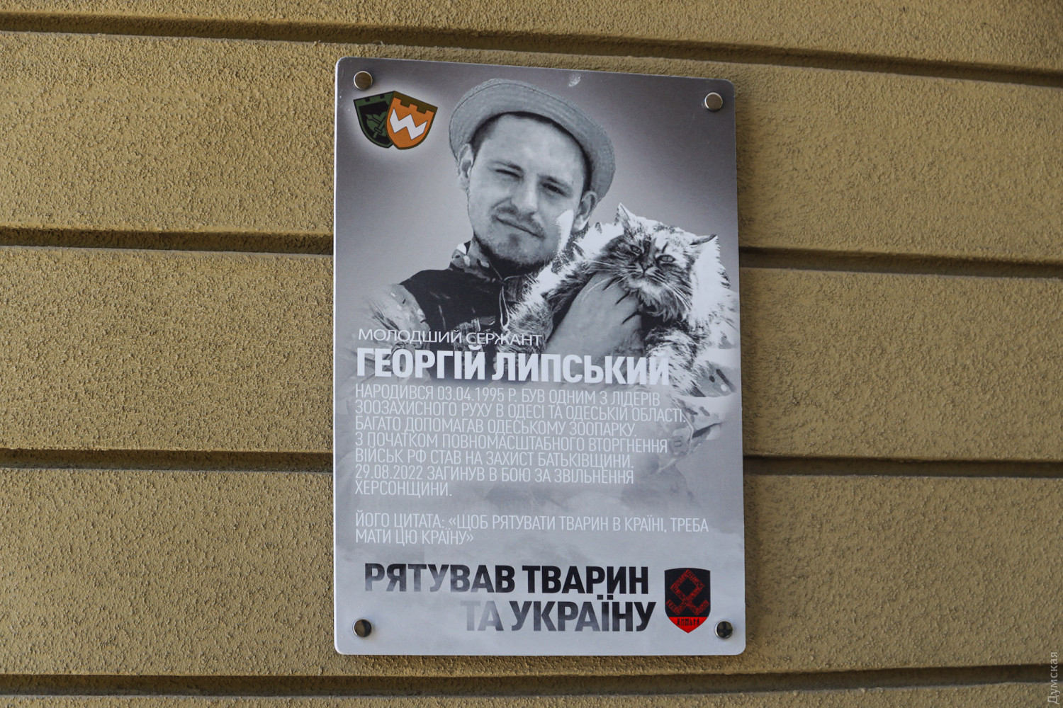 В одеському зоопарку відкрили пам`ятну табличку відомому зоозахиснику, який загинув під час звільнення ХерсонщиниПам'ятну табличку відомому одеському зоозахиснику, молодшому сержанту Георгію Липському, який загинув 29 серпня минулого року під час визволення Херсонської області, урочисто відкрили сьогодні при вході в одеський зоопарк. Як розповіла «Думській» одеська громадська діячка і волонтерка Яна Титаренко, це друга табличка на честь героя, першу встановили в рідному виші Георгія — Університеті імені Мечникова. «Ми хотіли відзначити зоозахисну діяльність Георгія, — розповіла Яна Титаренко. — Багато тварин, яких ми з ним разом рятували, приймали тут, у зоопарку. Деякі продовжують тут жити. Це і чапля, і орли, тут жив віслюк». За словами Яни Титаренко, побратими героя пообіцяли після нашої Перемоги приєднається до організації «Закон природи», яку створив Липський. «Це людина, про яку можна сказати — це цвіт нації, — зазначив директор зоопарку Ігор Бєляков. — Він активно займався зоозахисною діяльністю, і ми багато співпрацювали в частині порятунку різних тварин. Георгій був наділений не тільки любов'ю до тварин, а й великою повагою і любов'ю до людей. Це людина, яка жила і загинула з честю». СМЕРТЬ РОСІЙСЬКИМ ОКУПАНТАМ! Помітили помилку? Виділяйте слова з помилкою та натискайте control-enter |