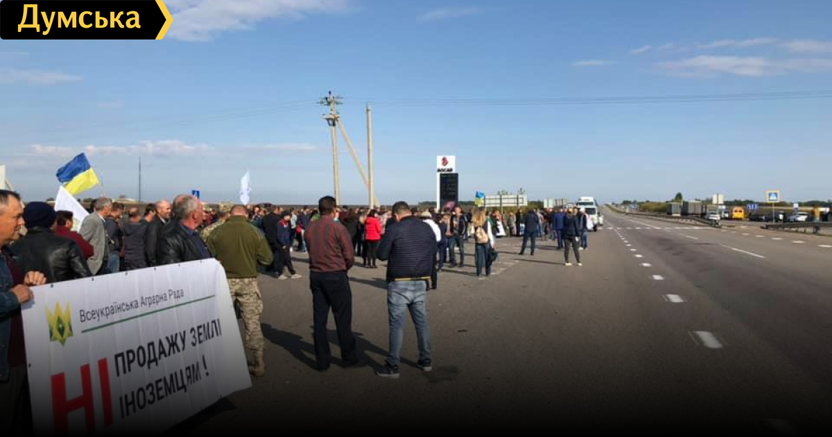 Акция протеста «Нет продаже земли иностранцам» прошла сегодня на трассе Одесса-Киев, в районе Любашевки. Ее организовала так называемая «Всеукраинская аграрная рада». Аналогичные митинги прошли и в других регионах страны. В ней приняло участие несколько сотен человек — преимущественно фермеров. Некоторые пригнали комбайны и тракторы. Перекрывать автодорогу они не стали. Аграрии выступают против отмены моратория на куплю-продажи земель сельскохозяйственного хозназначения: Кабинет министров Украины предлагает разрешить сделки с сельхозугодьями с 1 октября 2020 года. Участники акции потребовали от президента Владимира Зеленского, правительства и Рады провести всеукраинский референдум, по итогам которого внести изменения в Конституцию Украины, запретив иностранным гражданам прямо или опосредованно владеть украинской землей. Фото Евгения Иванченко СМЕРТЬ РОСІЙСЬКИМ ОКУПАНТАМ! Помітили помилку? Виділяйте слова з помилкою та натискайте control-enter |