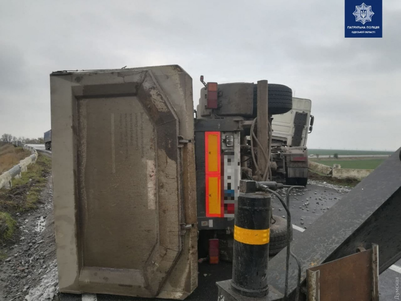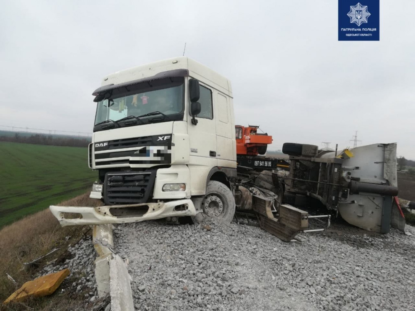 В Одесской области фура попала в ДТП на скользкой дороге: перевернулся прицеп с щебнемВодитель грузовика DAF не справился с управлением на скользкой после дождя дороге и врезался в дорожное ограждение у заезда на мост возле села Иваново в Лиманском районе Одесской области. В результате ДТП автомобиль развернуло, перевернулся прицеп с щебнем, который рассыпался по проезжей части. По данным патрульной полиции, в результате инцидента никто не пострадал. СМЕРТЬ РОСІЙСЬКИМ ОКУПАНТАМ! Помітили помилку? Виділяйте слова з помилкою та натискайте control-enter Новини по цій темі: 30 серпня 2025: Машина вилетіла в кювет: мер Рені потрапив в аварію, його мати загинула, а маленький син у лікарні (фото) 18 серпня 2025: Троє загинули, один у лікарні: на трасі Одеса-Рені водій Mercedes не пропустив фуру (фото) 28 липня 2025: П'яний на "Ягуарі" або гіпертонік? Звільнений топ-посадовець одеської поліції хоче повернутися на службу 2 квітня 2025: В Одесі водій BMW спровокував аварію, в якій постраждали п`ятеро людей, і втік (фото, відео) |