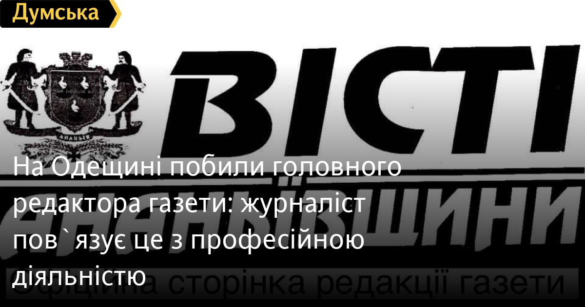 На Одещині побили головного редактора газети: журналіст пов`язує це з професійною діяльністюГоловного редактора газети «Вісті Ананьївщини» Володимира Сєдова побили невідомі. Про це заявив голова Одеської обласної організації НСЖУ Юрій Работін. Побиття редактор пов’язує зі своєю журналістською діяльністю. Вчора він повідомив про резонансну публікацію у своєму виданні щодо знесення дерев у центрі міста. Наразі телефон Володимира Сєдова не відповідає. Раніше сьогодні журналіст сказав, що подав заяву про напад у поліцію і пройшов медичне обстеження. Ми чекаємо на коментар від поліції. ОНОВЛЕНО О 21:15. Правоохоронці розслідують обставини скоєного відносно журналіста кримінального правопорушення у місті Ананьїв, повідомили в поліції регіону. Подія мала місце 12 липня, серед дня. Головний редактор місцевої газети звернувся до поліції із заявою про скоєний на нього напад та заподіяння тілесних ушкоджень. За вказаним фактом слідчі внесли відомості до Єдиного реєстру досудових розслідувань за ознаками ч.2 ст. 345-1 (погроза або насильство щодо журналіста) Кримінального кодексу України. Санкція статті передбачає покарання у вигляді обмеженням волі на строк до п’яти років або позбавленням волі на той самий строк. Слідство триває. Поліцейські встановлюють повні обставини події, осіб, причетних до неї. СМЕРТЬ РОСІЙСЬКИМ ОКУПАНТАМ! Помітили помилку? Виділяйте слова з помилкою та натискайте control-enter |