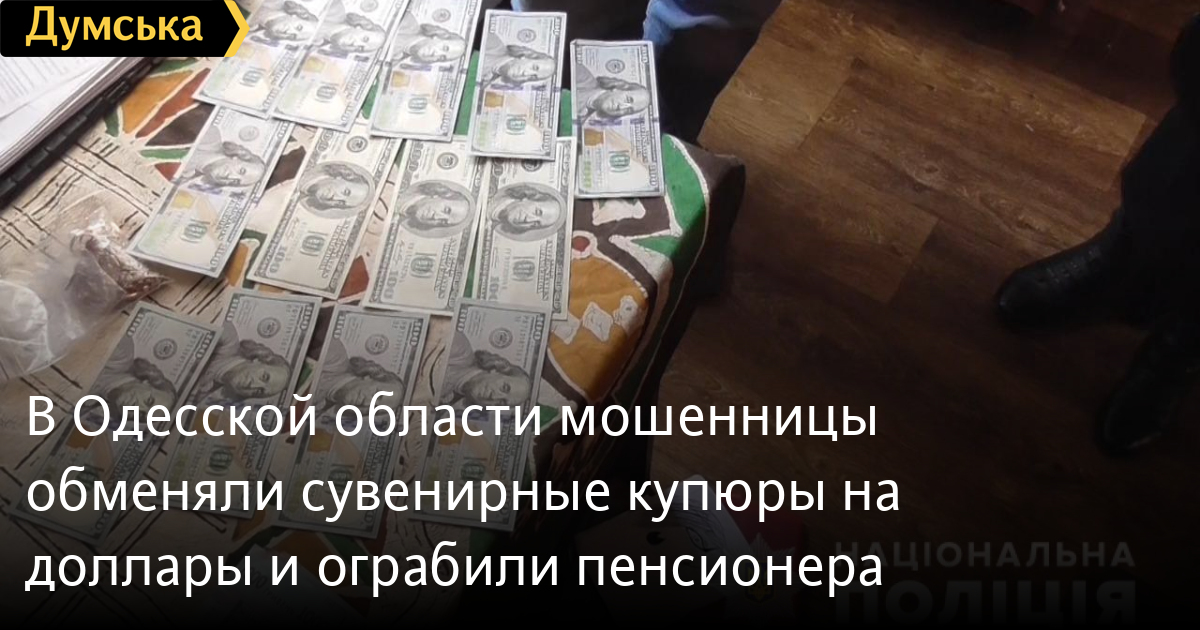 В Одесской области мошенницы обменяли сувенирные купюры на доллары и ограбили пенсионераПолиция задержала 33-летнюю жительницу Одесской области, которая вместе с подельницей обманным путем выманили деньги у пожилого жителя Балты, а затем отобрали у него 15 тысяч долларов. Как сообщили в ГУНП, фигурантка вместе с подругой пришли к 83-летнему жителю Балты и, представившись «волонтерками из благотворительного фонда», сказали, что хотят дать ему благотворительную помощь. Мошенницы дали пенсионеру две сувенирные купюры по 500 евро и попросили дать сдачу в 400 долларов. Кроме этого, гостьи украли остальные деньги – 15 тысяч долларов, которые пенсионер хранил в коробке из-под обуви. Действия женщин квалифицировали как преступления, предусмотренные ч.2 ст.190 и ч.4 ст.185 УК Украины (мошенничество, кража). Полицейские устанавливают личность второй подозреваемой. СМЕРТЬ РОССИЙСКИМ ОККУПАНТАМ! Заметили ошибку? Выделяйте слова с ошибкой и нажимайте control-enter |