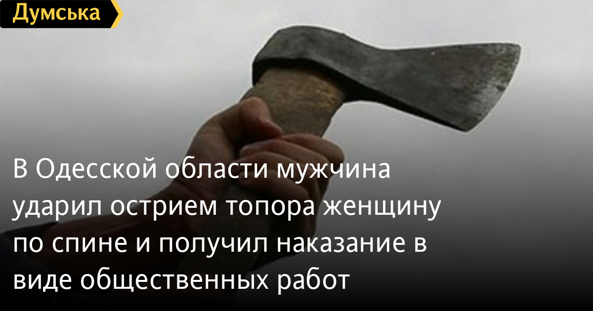 В Одесской области мужчина ударил острием топора женщину по спине и получил наказание в виде общественных работИзмаильский горрайонный суд приговорил жителя одного из близлежащих сел к 240 часам общественных работ, а также выплате 29 тыс. 249 грн морального ущерба женщине, которую он ударил острием топора по спине и нанес ей рубленную рану в районе пятого позвонка. Как сообщается в решении суда, полученная пострадавшей травмой была квалифицирована как легкое телесное повреждение, которое повлекло краткосрочный разлад здоровья. Нападавшего судили по ч.2 ст.125 УК Украины. Инцидент произошел вечером 10 апреля. Фигурант проходил мимо частного дома соседей и у него завязалась ссора с женщиной, которая работала по хозяйству возле забора. Подсудимый говорил, что женщина оскорбляла его и не реагировала на его попытки ее успокоить, поэтому он вернулся домой за топором, чтобы припугнуть ее, после чего ударил отвлекшуюся соседку по спине. Пострадавшая же говорила, что нападавший был пьян, шел мимо и что-то бормотал. Она отвернулась от него и тут почувствовала удар внизу спины. После этого, по ее словам, сосед еще дважды замахивался на нее топором. После нападения на крик женщины из дома выскочил ее муж, который повалил соседа на землю, выбил у него из рук топор и принялся бить его кулаками по лицу. Свидетели говорят, что слышали, как пострадавшая кричала мужу: «Бей сильней!». Во время суда выяснилось, что между соседями уже давно был конфликт. Соседка часто ругалась с мужчиной, который в результате ударил ее топором, свидетели говорят, что она «учила его жизни». Пострадавшая женщина вместе с мужем в 2015-м установила камеры видеонаблюдения, которые по решению сельсовета должны были снять. Несколько свидетелей указали, что схватившийся за топор мужчина всегда был спокойным, уравновешенным и неконфликтным человеком. После инцидента мать фигуранта перечислила пострадавшей 9280 гривен на лечение. Пострадавшая деньги не приняла, однако факт компенсации нанесенного урона суд причислил к обстоятельствам, которые смягчают степень вины подсудимого. СМЕРТЬ РОССИЙСКИМ ОККУПАНТАМ! Заметили ошибку? Выделяйте слова с ошибкой и нажимайте control-enter Новости по этой теме: 30 сентября 2021: В Хмельницкой области директор школы предстанет перед судом из-за буллинга в его учебном заведении 16 сентября 2021: В Одессе 52-летний мужчина пойдет под суд за развращение и изнасилование десятерых несовершеннолетних девочек 12 сентября 2021: Под Киевом после застолья обнаружен мертвым судья столичного райсуда 2 сентября 2021: Дело о госизмене: Медведчуку продлили домашний арест на два месяца |