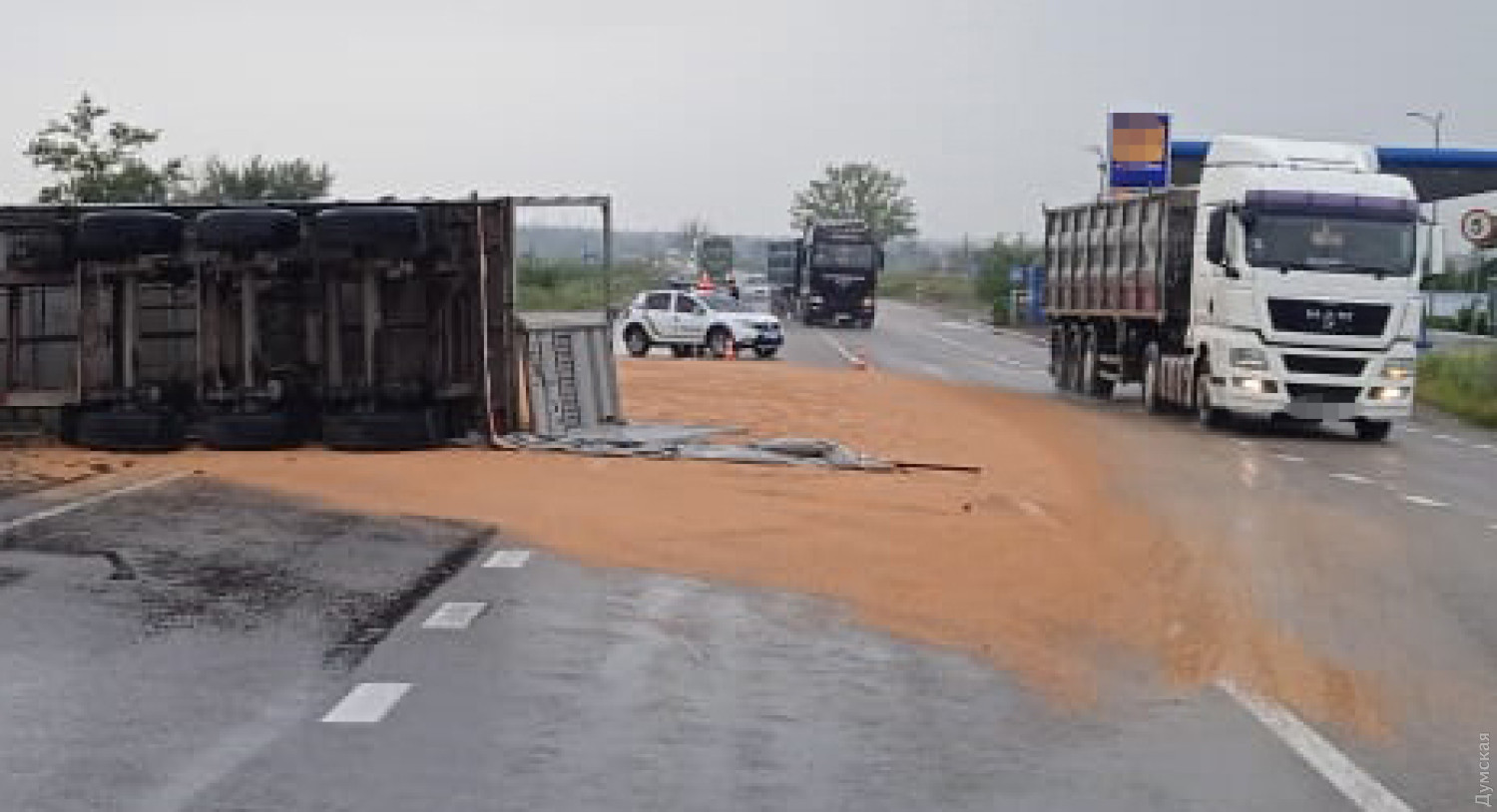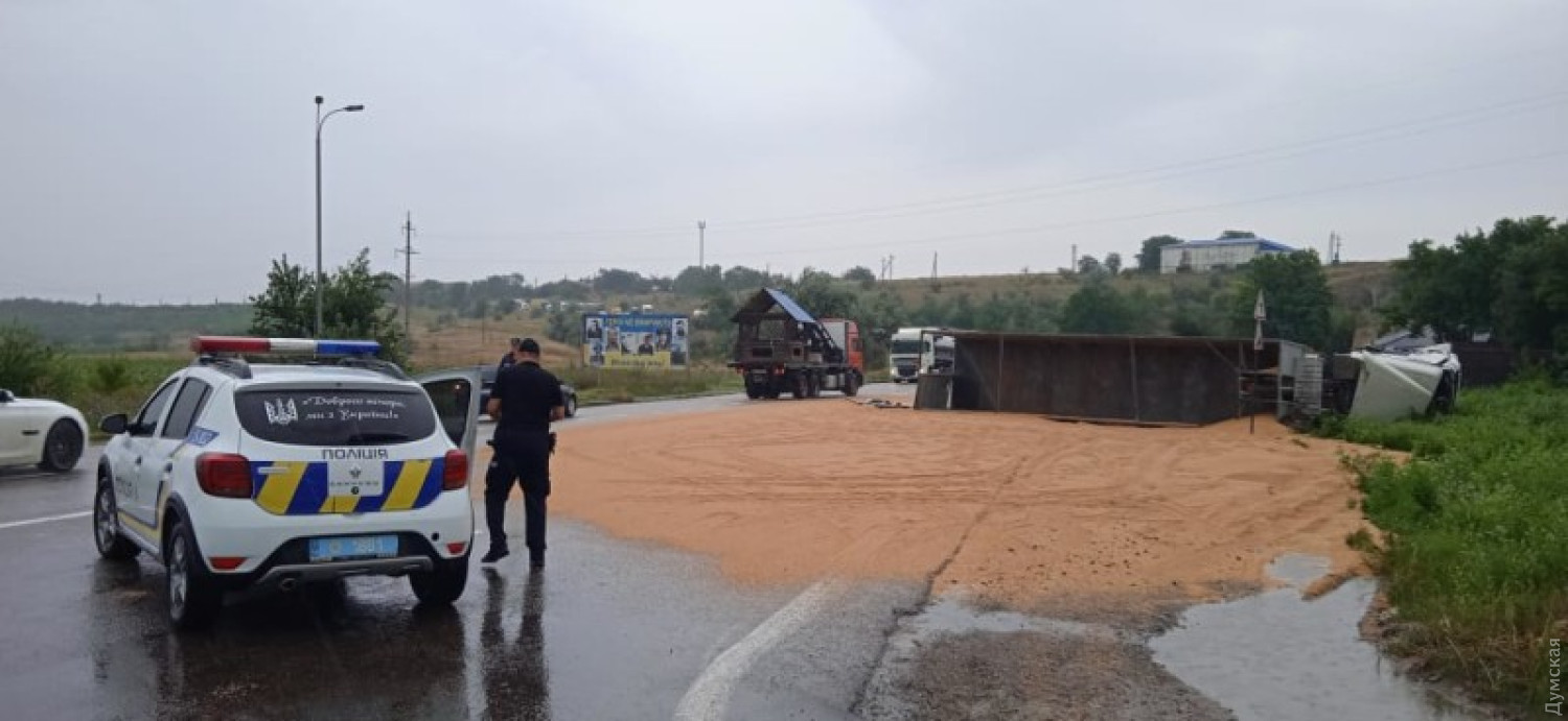 Вантажівка DAF, що перевозила причіп із зерном, перекинулася на трасі Одеса — Рені в районі Татарбунар. В обласній поліції повідомили, що 55-річний водій, мешканець Чернігівської області, дістав важкі травми. ДТП сталася через те, що водій фури не впорався з керуванням. Зерно розсипалося на проїжджу частину, однак, за даними поліції, проїзд не ускладнено. Помітили помилку? Виділяйте слова з помилкою та натискайте control-enter Новини по цій темі: 30 серпня 2025: Машина вилетіла в кювет: мер Рені потрапив в аварію, його мати загинула, а маленький син у лікарні (фото) 18 серпня 2025: Троє загинули, один у лікарні: на трасі Одеса-Рені водій Mercedes не пропустив фуру (фото) 28 липня 2025: П'яний на "Ягуарі" або гіпертонік? Звільнений топ-посадовець одеської поліції хоче повернутися на службу 2 квітня 2025: В Одесі водій BMW спровокував аварію, в якій постраждали п`ятеро людей, і втік (фото, відео) |