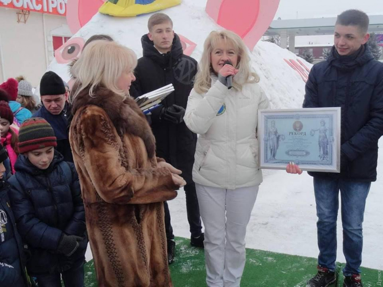 Огромную свинью из снега создала в Подольске «команда активной молодежи» под руководством первого заместителя городского головы Татьяны Агеевой. Как передает корреспондент «Думской», чиновница планировала зарегистрировать национальный рекорд Украины в номинации «снежная скульптура». Торжественное открытие фигуры и регистрацию рекорда свиноделы приурочили к столетнему юбилею Соборности. Длина свиньи составила 16 метров 20 см, высота — 3 метра 40 см. В последний момент, однако, выяснилось, что в 2015 году в Киеве создали снежную скульптуру длиной 26 метров и высотой 4 м, и то была именно скульптура, то есть произведение искусства, а не то, что сотворили в Подольске. Впрочем, без рекорда райцентр не остался. Свинью признали самой большой в области снежной «инсталляцией». СМЕРТЬ РОССИЙСКИМ ОККУПАНТАМ! Заметили ошибку? Выделяйте слова с ошибкой и нажимайте control-enter |