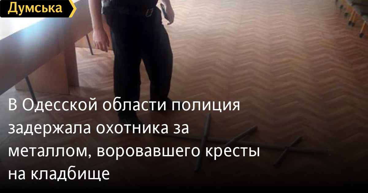 В Одесской области полиция задержала охотника за металлом, воровавшего кресты на кладбищеВ Савранском районе Одесской области полиция задержала 60-летнего мужчину, который сдавал на металлолом кресты, украденные на сельском кладбище. Как сообщила пресс-служба ГУНП, к правоохранителям обратилась жительница села Байбузовка. Она сообщила, что с могил ее родственников исчезли два алюминиевых креста. В ходе оперативно-розыскных мероприятий полиция проверила пункты приема металлолома. На одном из них нашли украденные конструкции. Правоохранители выяснили, что их сдал 60-летний местный житель. Всего мужчина срезал на могилах 15 алюминиевых труб. Вскоре злоумышленника задержали и он признался в содеянном. Открыто уголовное производство по ч. 1 ст. 297 УК Украины (надругательство над могилой). СМЕРТЬ РОССИЙСКИМ ОККУПАНТАМ! Заметили ошибку? Выделяйте слова с ошибкой и нажимайте control-enter |