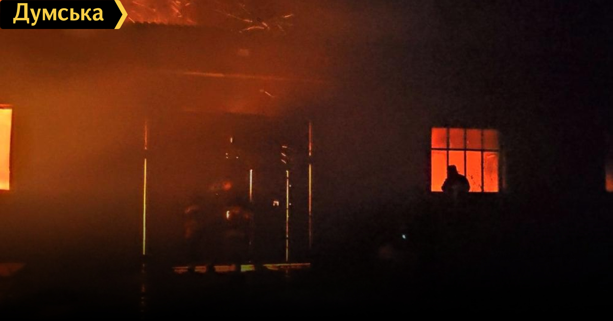 В этом помещении был пожар вследствие атаки. Спасатели до сих пор проливают.