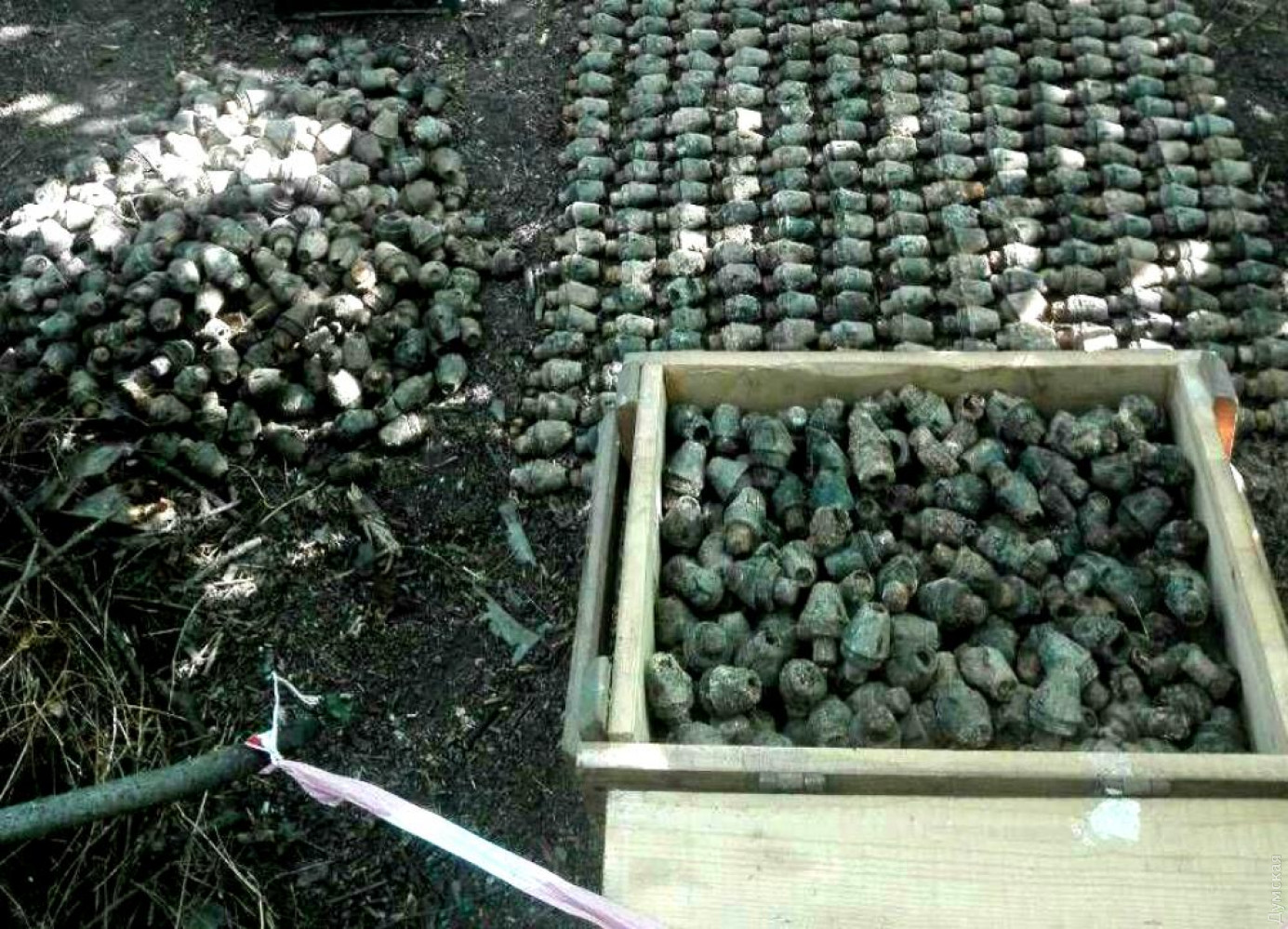 В Одесской области сотрудники ГСЧС обезвредили несколько тысяч взрывателей времен Второй мировой войныБольшое количество взрывоопасных предметов времен Второй мировой войны обезвредили на днях пиротехники аварийно-спасательного отряда специального назначения ГУ ГСЧС в Одесской области. Нашли их в лесополосе за пределами села Сербка Лиманского района местные жители. На место выехали пиротехники, которые изъяли 4547 взрывателей для минометных мин, 27 минометных мин калибра 50 мм, одну минометную мину калибра 82 мм, один артиллерийский снаряд 152 мм, один снаряд 76 мм, ручную гранату Ф-1. Все боеприпасы были уничтожены. А вчера в Бялевском районе, у села Выгода, во время земляных работ нашли десять 76-мм артснарядов. Пиротехники их изъяли и уничтожили на полигоне. СМЕРТЬ РОСІЙСЬКИМ ОКУПАНТАМ! Помітили помилку? Виділяйте слова з помилкою та натискайте control-enter |