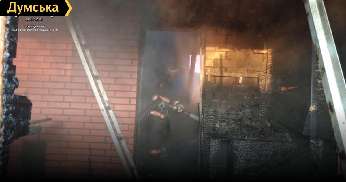 В этом помещении был пожар вследствие атаки. Спасатели до сих пор проливают.