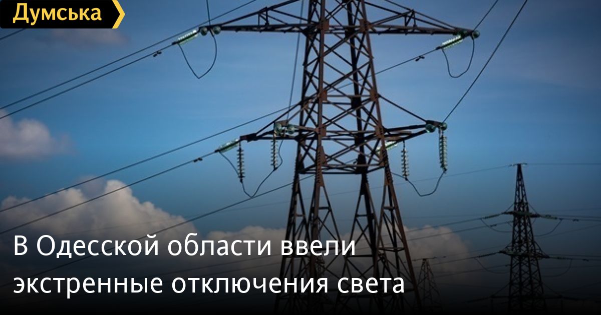 Екстрені відключення електроенергії ввели в Одеській області за розпорядженням «Укренерго».