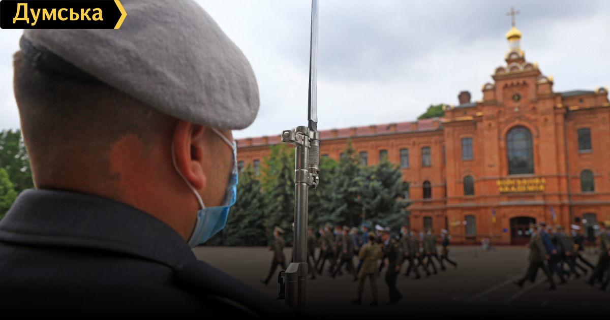«Сегодня мы выпускаем почти три сотни лейтенантов, — заявил начальник вуза генерал-майор Олег Гуляк. — Это десантники, морские пехотинцы, разведчики, спецназовцы, специалисты тыла и вооружения. Более сотни имеют боевой опыт, десятки — боевые награды. Эти люди пришли в академию в самые горячие моменты начала войны. Они приняли решение быть офицерами, и сегодня они ими стали». Молодых офицеров приветствовал президент Украины Владимир Зеленский. Правда, дистанционно: речь верховного главнокомандующего прокрутили в записи. Руководитель государства пожелал выпускникам успехов в службе и борьбе с агрессором — Российской Федерацией (так и сказал, честное слово). Командующий Военно-морскими силами Украины контр-адмирал Алексей Неижпапа поблагодарил родителей молодых офицеров за то, что поддержали выбор своих детей: «Одесская академия — один из лучших военных вузов Украины, выпускающий настоящих профессионалов. Сегодня у многих из вас я вижу ордена, которых нет даже у меня. Но я хотел бы сказать спасибо вашим родным и близким — матерям и отцам, которые поддержали ваш выбор защищать страну в сложное для нее время. С сегодняшнего дня вы уже не курсанты, с сегодняшнего дня вы командиры, за вами будут идти люди, они будут идти в бой и слушать ваши указания, все полученные знания вы должны использовать для того, чтобы спасти жизни людей и победить врага — Российскую Федерацию». Командующий морской пехоты ВМСУ генерал-лейтенант Юрий Содоль лично вручал дипломы и напутствовал лейтенантов, которые будут командовать подразделениями морпехов (Военная академия готовит таких специалистов с 2016 года). В связи с эпидемией коронавирусной инфекции родных и близких выпускников не пустили на территорию учебного заведения — они наблюдали за церемонией через ограду. Фото Сергея Смоленцева