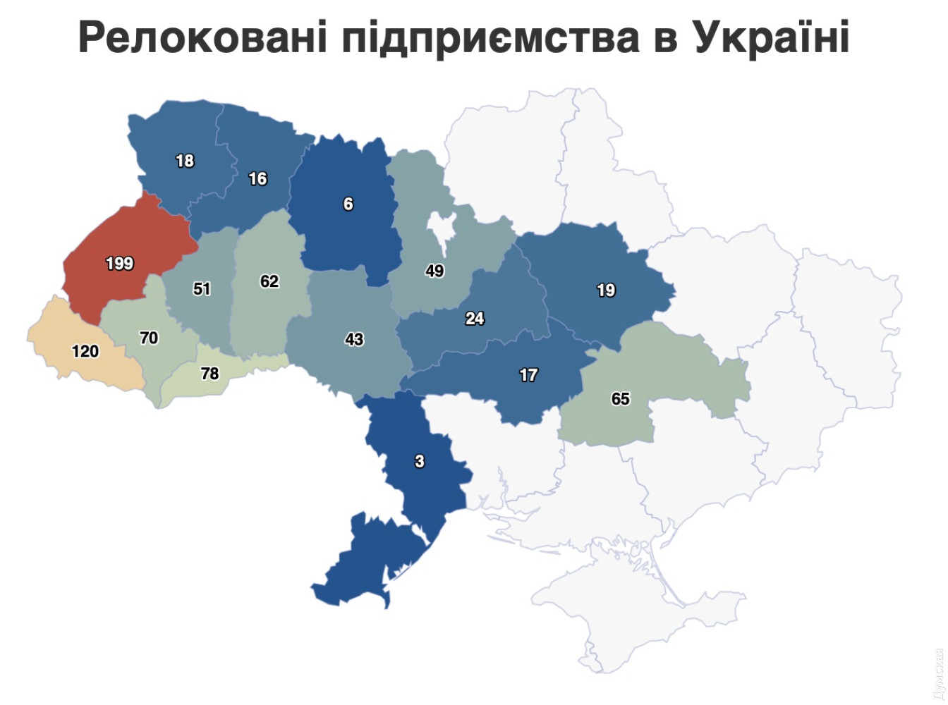 Лише три українські компанії обрали Одеську область місцем релокації із зони бойових дій. За даними сервісу OpenDataBot, наш регіон перебуває на останньому місці за кількістю фірм, які переїхали сюди після початку великої війни. Лідирує за популярністю для релокації Львівська область. Туди перебралися 199 компаній, на другому місці Закарпаття — 120, на третьому Чернівецька область — 78. У статистиці враховується релокація, яка була здійснена за допомогою держави через сервіс Prozorro. У такий спосіб бізнесмени можуть отримати допомогу з підбором місця для розміщення своїх виробничих потужностей, їм допоможуть із переїздом, розселенням працівників на новому місці, забезпеченні логістики, закупівлями сировини тощо. За час великої війни такими послугами скористалися 840 підприємств. Наразі релокація можлива в один із регіонів: Закарпатська, Івано-Франківська, Львівська, Тернопільська, Хмельницька, Чернівецька, Вінницька, Волинська, Рівненська, Кіровоградська, Черкаська, Полтавська, Дніпропетровська та Київська (за винятком Києва) області. Помітили помилку? Виділяйте слова з помилкою та натискайте control-enter |