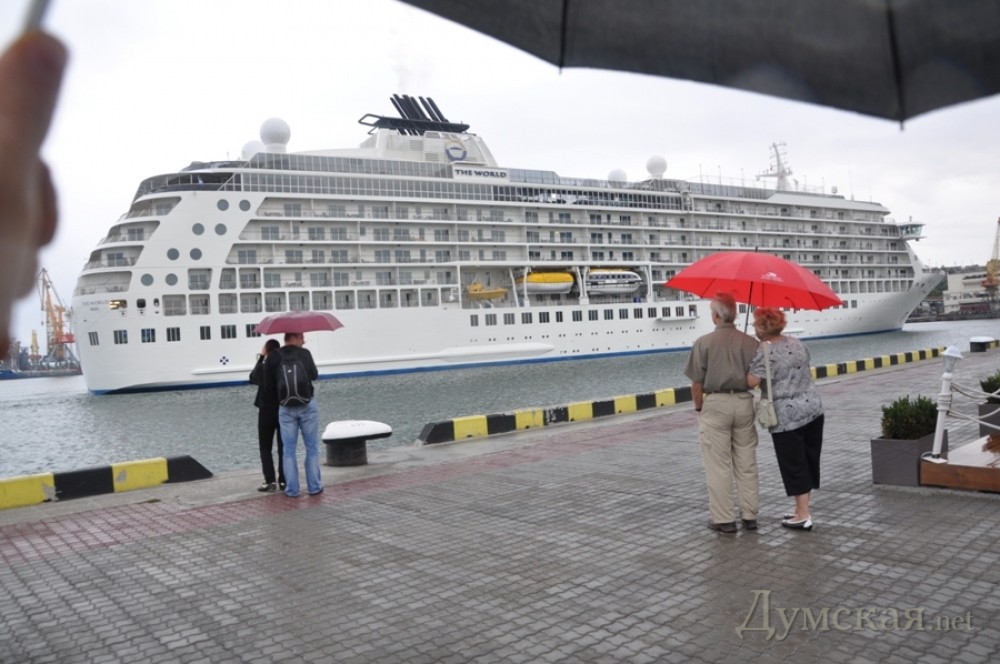 В Одессе гостит теплоход The World, пассажиры которого одновременно являются владельцами жилых апартаментов на борту и акционерами фирмы-судовладельца. Как сообщает пресс-служба порта, этот лайнер — первое морское пассажирское судно, спроектированное по принципу жилого дома. Он построен на верфях Швеции и Норвегии в 2002-м году. Длина – 196 м, ходит под флагом Багамских островов. «Распорядок дня «ответственных квартиросъемщиков» The World несколько отличается от расписанных по часам будней туристов на обычных круизных лайнерах. Всего на 11 пассажирских палубах судна разместились 110 апартаментов площадью от 100 до 300 кв. метров, со спальнями, кухнями, ванными, балконами. Их хозяева могут круглогодично находиться на судне (при этом не забывая вносить «квартплату», которая идет на содержание судна и команды), либо подсаживаться на борт в любой точке земного шара. Они также могут сдавать свои апартаменты кому пожелают», — говорится в сообщении.