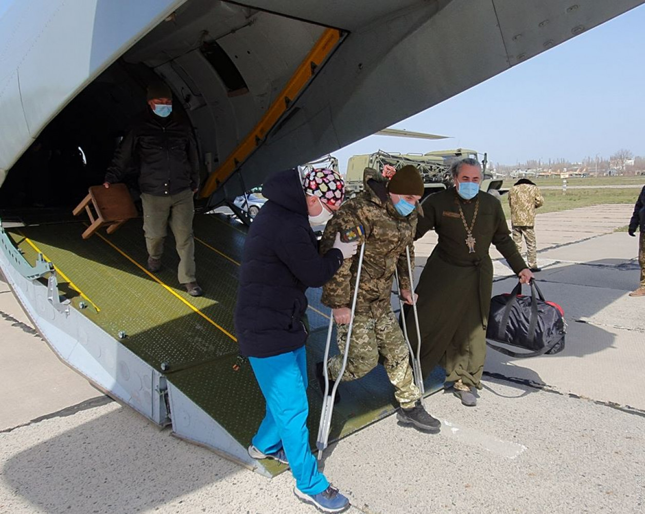 Самолет Ан-26 «Vita» Вооруженных сил Украины с военнослужащими, получившими ранения на фронте российско-украинской войны, только что приземлился в Одессе. Как сообщил волонтер Андрей Танцюра, на нем прибыло 14 военнослужащих. Пятеро находятся в тяжелом состоянии. «У многих минно-взрывные травмы, тяжелые ранения глаз, грудной клетки», — отмечает он. Раненых доставили в Военно-медицинский клинический центр Южного региона (411-й госпиталь). Фото Андрея Танцюры СМЕРТЬ РОСІЙСЬКИМ ОКУПАНТАМ! Помітили помилку? Виділяйте слова з помилкою та натискайте control-enter |