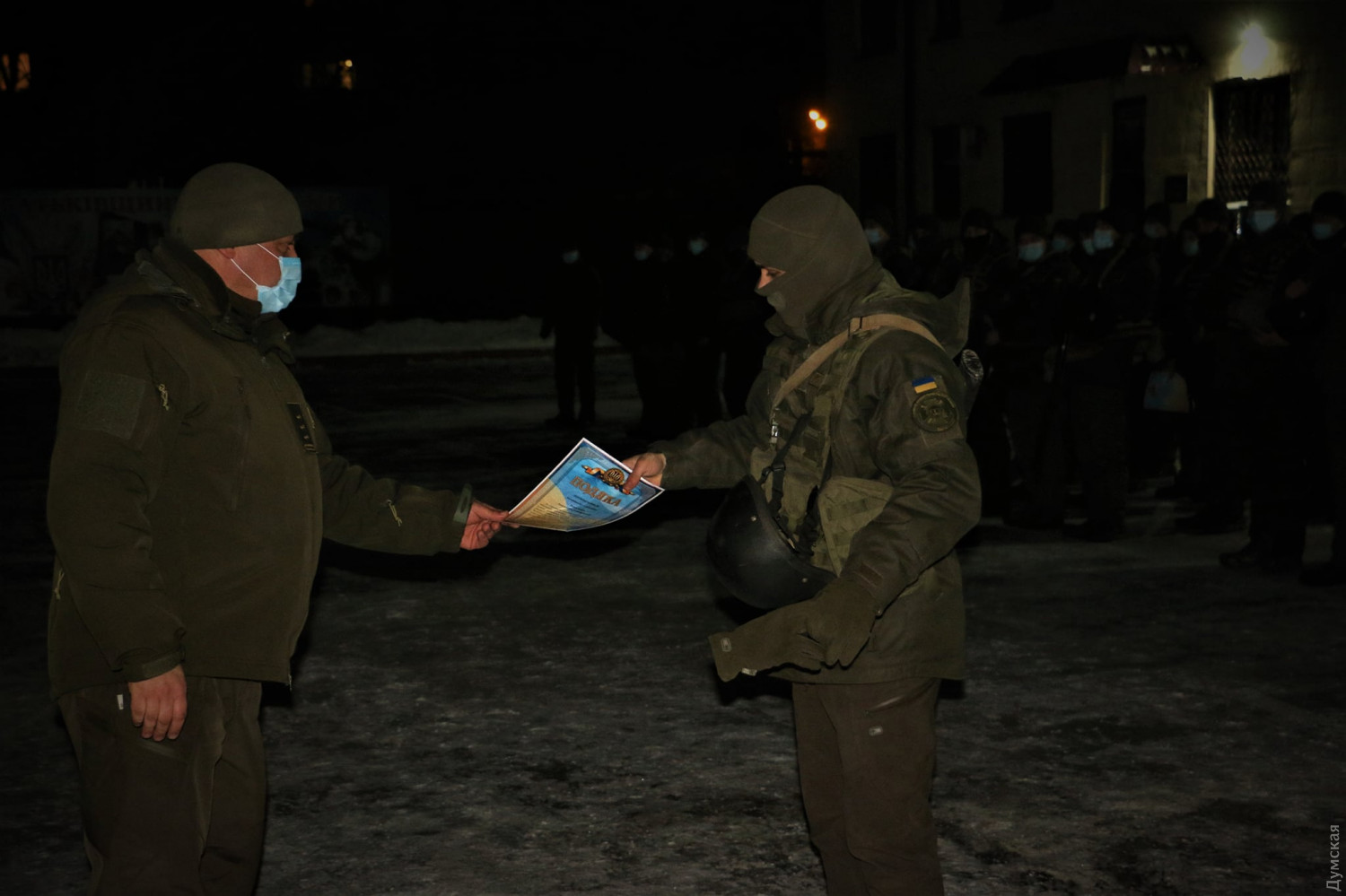 «Спасибо за то, что вы выполнили с честью свое боевое задание, показали высокий уровень профессионализма и отвагу. Благодаря вам в наших домах остается мир и спокойствие», — заявил командир военной части НГУ №3012 полковник Вячеслав Краснопольский.