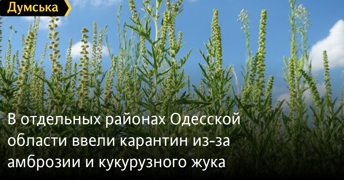 В отдельных районах Одесской области ввели карантин из-за амброзии и кукурузного жукаВ Ширяевском районе Одесской области ввели карантинный режим из-за вызывающего аллергическую реакцию сорняка амброзии полыннолистной (Ambrosia artemisiifolia L.) Об этом сообщили в Главном управлении Госпродпотребслужбы в Одесской области. Для локализации и ликвидации этого растения в районе введен план фитосанитарных мероприятий. В Кодымском и Захарьевском районе Одесской области введен карантин из-за западного кукурузного жука — вредителя, уничтожающего кукурузные поля. Карантинный режим введен в селе Сергеевка Кодымского района и селе Карабаново Захарьевского района. Впервые этого вредителя обнаружили в Украине в 2001 году в Закарпатье. В США ежегодные потери и траты на борьбу с ним составляют около 1 млрд долларов. СМЕРТЬ РОССИЙСКИМ ОККУПАНТАМ! Заметили ошибку? Выделяйте слова с ошибкой и нажимайте control-enter |